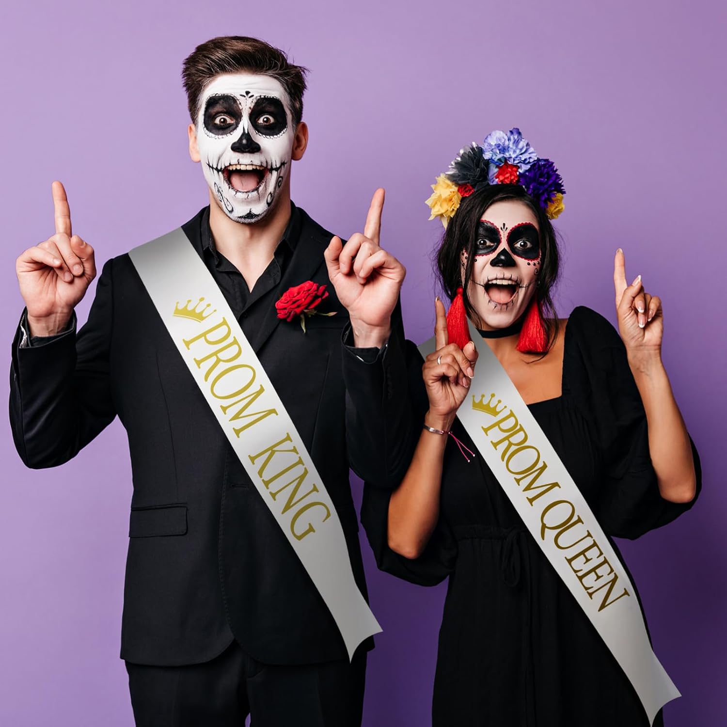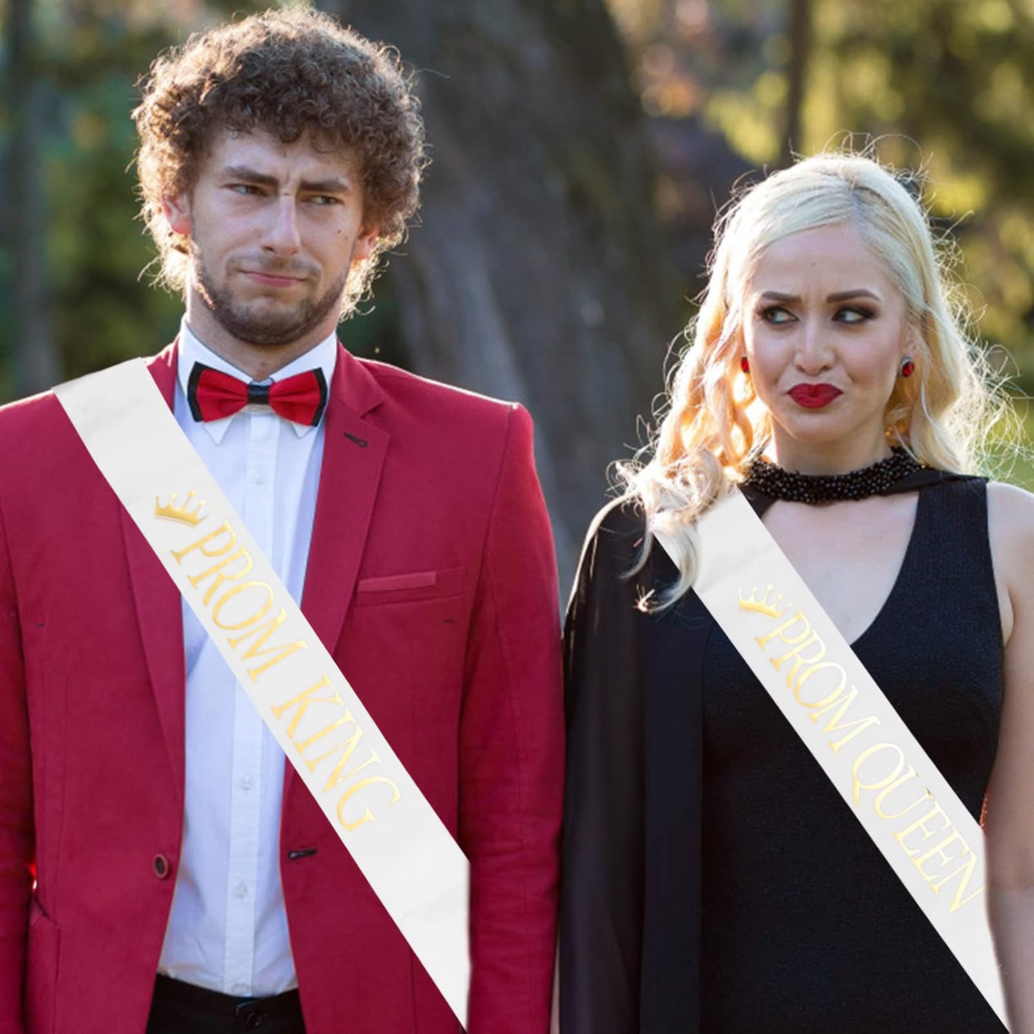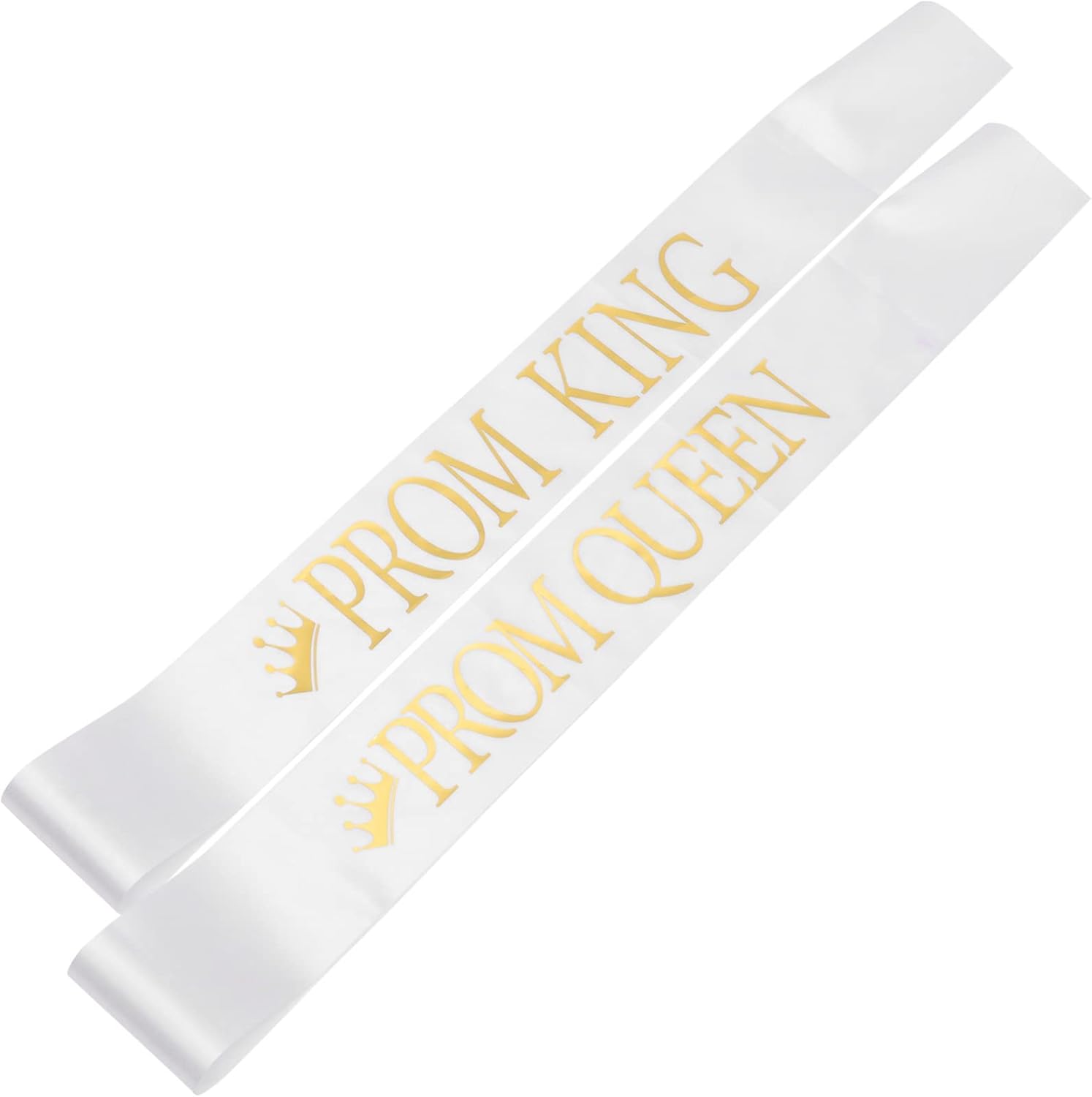 OTTIMO RAPPORTO QUALITÀ- : questo set include 2 fasce. Una fascia con la scritta "PROM KING" e una con la scritta "PROM QUEEN". Le fasce sono realizzate in tessuto bianco con lettere in lamina d'oro. PER LA FESTA DI LAUREA: questo kit di fasce è un fantastico, porterà una sorpresa re e alla reginetta del ballo, rendendo la festa ancora più significativa! Sarà un premuroso, una sorpresa davvero commovente da parte vostra. DESIGN ACCATTIVANTE: morbida e comoda da indossare, la fascia (un lato) misura 80 cm di lunghezza e 9,5 cm di larghezza ed è facilmente regolabile. Questa elegante fascia da ballo ti farà risaltare ovunque tu sia. FASCE DIVERTENTI PER IL BALLO DI FINE ANNO: crea un look elegante per la tua incoronazione con le fasce abbinate PROM KING e PROM QUEEN. Goditi il centro dell'attenzione durante la festa di laurea. SUGGERIMENTI: se la fascia arriva leggermente stropicciata a causa del trasporto, è consigliabile stirare il retro della fascia per evitare che la lamina sciolga! Auguro a te, alla tua famiglia e ai tuoi amici una buona festa.