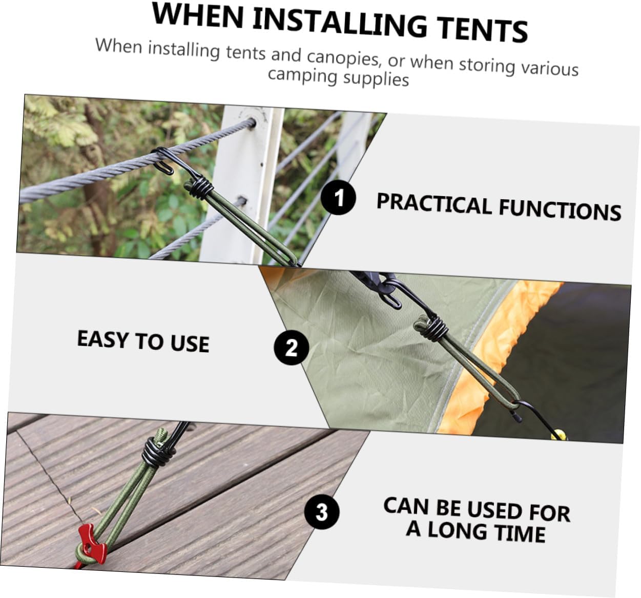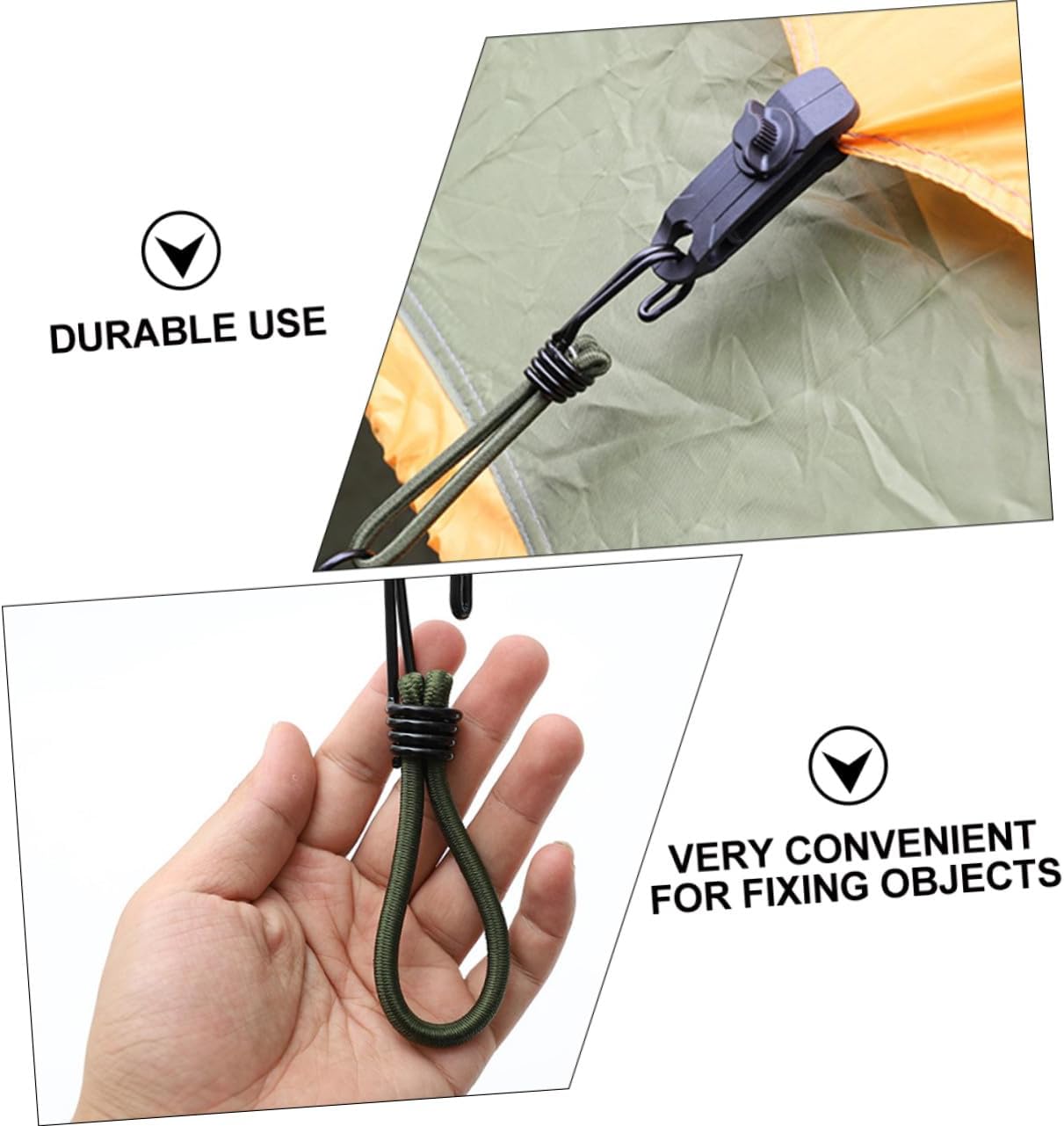 Ganci per tende da campeggio: un valido aiuto per il campeggio all'aperto per fissare le tende in modo saldo e stabile, forniture da campeggio Fibbia per corda elastica: realizzata in materiale resistente e pratico per l'uso, gancio per corda da Gancio per corda elastica: la corda è realizzata in lattice, che è molto , non preoccuparti di romperla perché la corda sopporta troppa tensione, la nostra corda elastica può sopportare una di trazione maggiore rispetto alla normale corda elastica, accessori da campeggio Attrezzi da campeggio all'aperto: adozione di, robusti e durevoli per un uso a lungo termine, gancio per da campeggio Gancio di fissaggio del cavo: è sicuro e non ferirà la mano, resistente all'abrasione, il che rende il cavo molto affidabile anche in condizioni difficili, fibbia a gancio