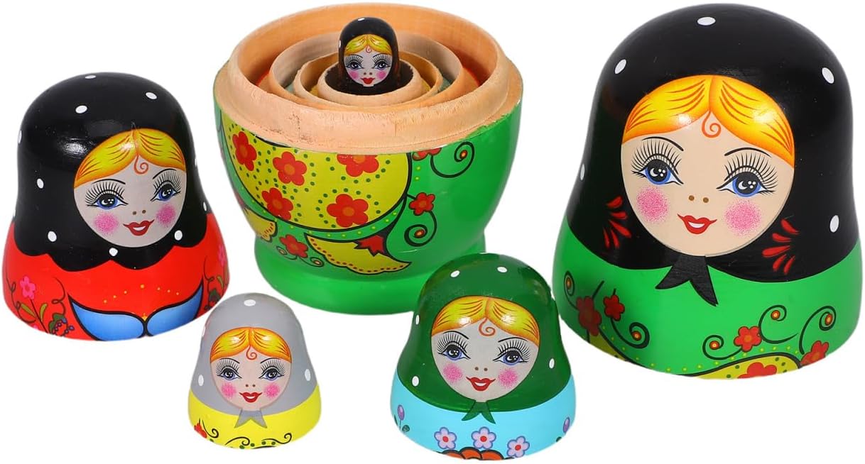 Tutte queste bambole da nidificazione sono realizzate in materiale di alta qualità per un uso pratico e durevole. Bellissimi sia per i bambini come giocattolo che per gli adulti come collezione o decorazione. Può essere utilizzato come decorazione e può essere utilizzato anche per riporre gioielli, piccoli oggetti, caramelle e così via. Un regalo speciale per gli appassionati di arti e mestieri a Natale, San Valentino, compleanno e altri. Queste bambole possono essere utilizzate come ornamenti e scatole regalo o per conservare gioielli, piccoli oggetti, caramelle, ecc. Materiale di alta qualità: questi cinque strati di bambole matrioska russe sono realizzati in pregiato legno di tiglio, che ne garantisce la durata e la facilità d'uso. Uso versatile: queste bambole dipinte a mano non sono solo un giocattolo per bambini, ma servono anche come decorazioni eleganti o oggetti da collezione per adulti.