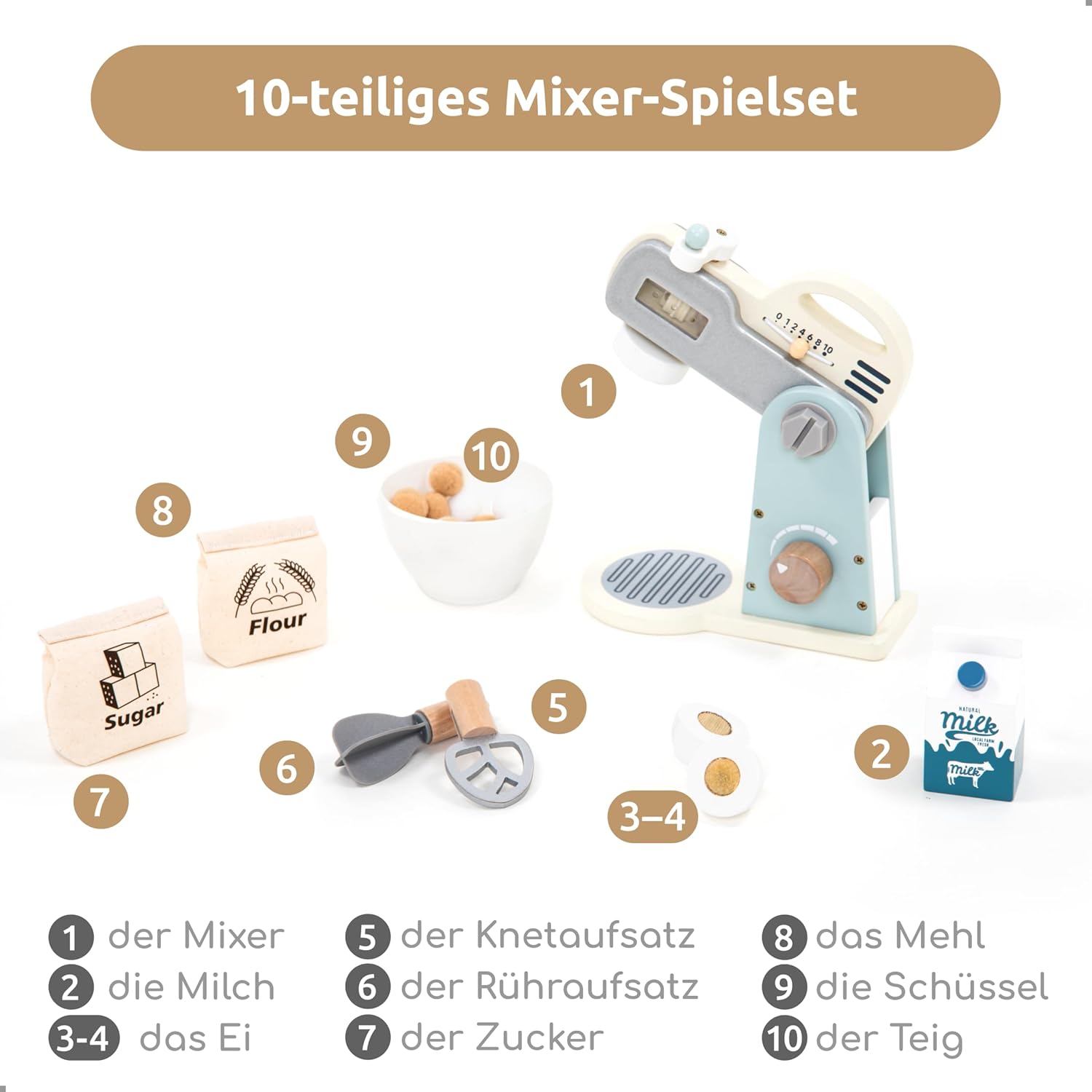 Set da 10 pezzi per bambini dai 3 anni in su: questo set da gioco umu contiene tutto ciò di cui i piccoli panettieri hanno bisogno per le loro prime creazioni di cottura, ad esempio una ciotola, una frusta e diversi ingredienti. I bambini possono cuocere le proprie torte e sviluppare la loro cucina in modo giocoso. Impara giocando: con questo set i bambini possono entrare nel ruolo di panetteria e dare libero sfogo alla loro creatività. Il gioco promuove le capacità motorie, le abilità sociali e la comprensione degli alimenti e della preparazione – senza tempo sullo schermo. Regalo perfetto: questo set da cucina in legno è un'ottima idea regalo per piccoli fornelli. Che sia per un compleanno, Natale, Pasqua o come sorpresa, porterà ore di divertimento e stimola l'immaginazione. Sicuro e legno: il giocattolo è realizzato in legno di alta qualità con colori atossici, bordi lisci e lunga durata. Soddisfa i rigorosi standard europei EN71 ed è certificato CE. umu Garanzia e promessa: la tua soddisfazione è la nostra priorità. Se non sei soddisfatto di uno dei nostri prodotti, ti preghiamo di contattarci e ti aiuteremo a risolvere immediatamente il problema - forniamo un servizio clienti tedesco.