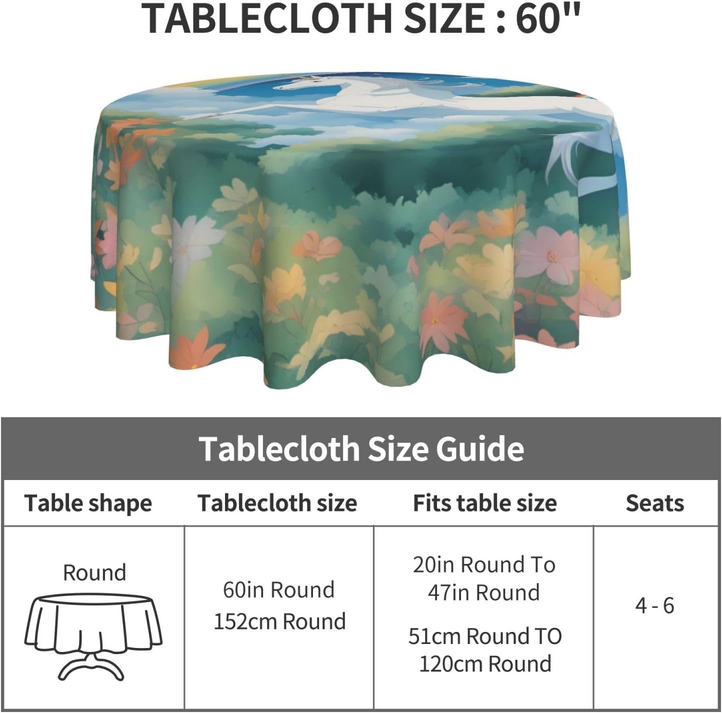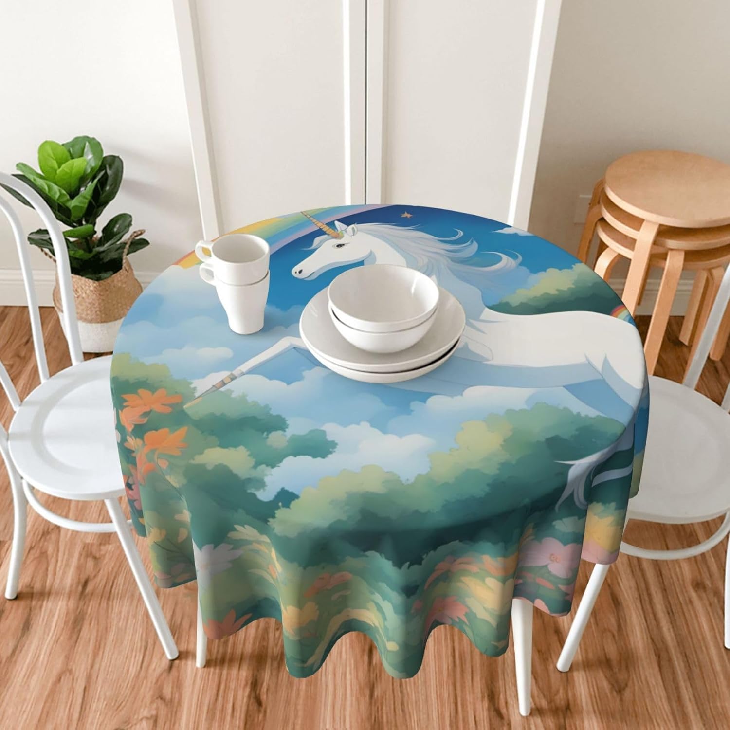 Bellissimo design a stampa completa di unicorni: con un design a stampa completa che aggiunge un tocco unico all'arredamento della tua sala da pranzo e della cucina e rende ogni pasto o riunione più piacevole. 【Materiale di qualità】 Realizzata in tessuto 100% poliestere, questa tovaglia rotonda presenta una consistenza calda e morbida e un'eccellente resistenza alle pieghe, garantendo durata ed estetica coerente. RESISTENTE ALL'ACQUA E RIUTILIZZABILE: Realizzata in materiale resistente all'acqua di alta qualità, la nostra tovaglia protegge il tuo tavolo e i tuoi mobili da graffi e macchie. Inoltre è facilmente lavabile per un uso ripetuto, garantendo ogni volta un aspetto fresco. MULTIUSO - Perfetto per una varietà di cene al chiuso e all'aperto (bar, cene, brunch, buffet, picnic, matrimoni, feste) e tutte le tavole rotonde (tavolini da caffè, tavoli da pranzo, tavoli da fattoria). Il set include: il nostro pacchetto include una tovaglia rotonda robusta ed elegante per la tua comodità.