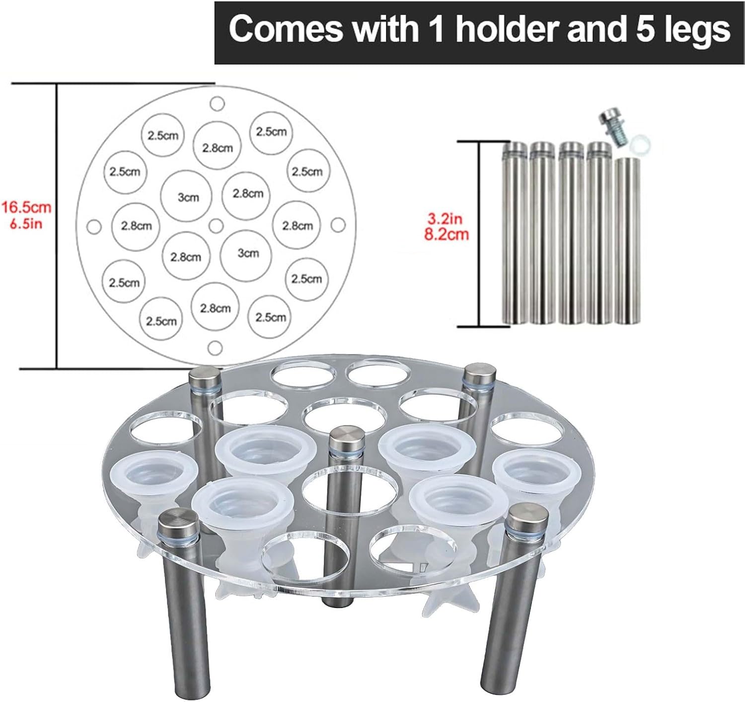 [Robusto materiale acrilico] Realizzato in acrilico, questo supporto per stampi garantisce affidabilità mantenendo i tuoi pezzi degli scacchi al sicuro e . [Spazio singolo pezzo] Con 16 fori dedicati, ogni pezzo degli scacchi può essere conservato separatamente per evitare graffi e danni, rimane in condizioni incontaminate. Supporto con 5 gambe: l'innovativo design a cinque gambe offre un'eccellente stabilità, rendendo facile organizzare i materiali di fusione e gli stampi in modo efficiente. Installazione senza attrezzi: monta senza sforzo il supporto degli stampi senza bisogno di attrezzi, perfetto sia per principianti che per esperti artigiani fai da te.