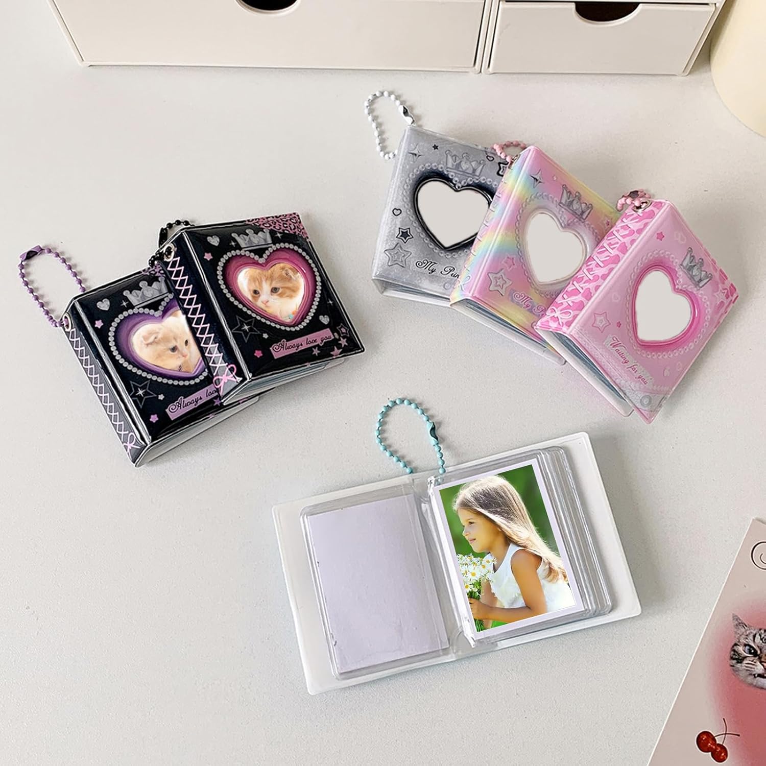 Funziona anche come organizer decorativo per foto per portafogli, album ritagli o ganci da parete, combinando pratiche protezioni fotografiche con opzioni personalizzazione Caratterizzato da struttura in PVC amichevole e molteplici tasche trasparenti con facile accesso, protegge le foto da graffi, sbiadimento e piegatura durante l'uso frequente per fan, studenti e professionisti che necessitano spazio organizzato per cimeli, foto cartoline o eventi per cordini per convention, espositori per dormitori, scrivanie per ufficio o kit da viaggio per mettere in mostra le foto più care mantenendo l'accessibilità immediata portatile, questo portafoto in miniatura in PVC protegge in modo sicuro carte carte negozi, oggetti da collezione celebrità e istantanee in custodie protettive trasparenti mentre adatta facilmente a borsette o borsette