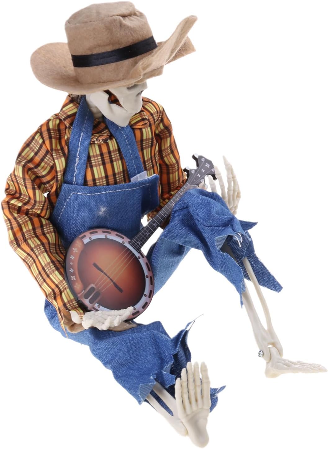 Da mettere nel vostro salotto o nella vostra festa di Halloween per creare un'atmosfera rilassante Portate un'atmosfera spaventosa e impressionante nelle vostre decorazioni di Halloween con questo divertente scheletro animato banjo animato Questa statua scheletrica è realizzata in plastica di alta qualità e presenta giunti mobili e misura 40 x 10 x 4,5 cm Questo banjo scheletro perfetto per gli appassionati di Halloween e gli appassionati di abitazioni uniche e sicuramente impressionerà Preparati a essere stupito perché il movimento animato e il suono attivato la musica risvegliano questo banjo con il teschio da cowboy