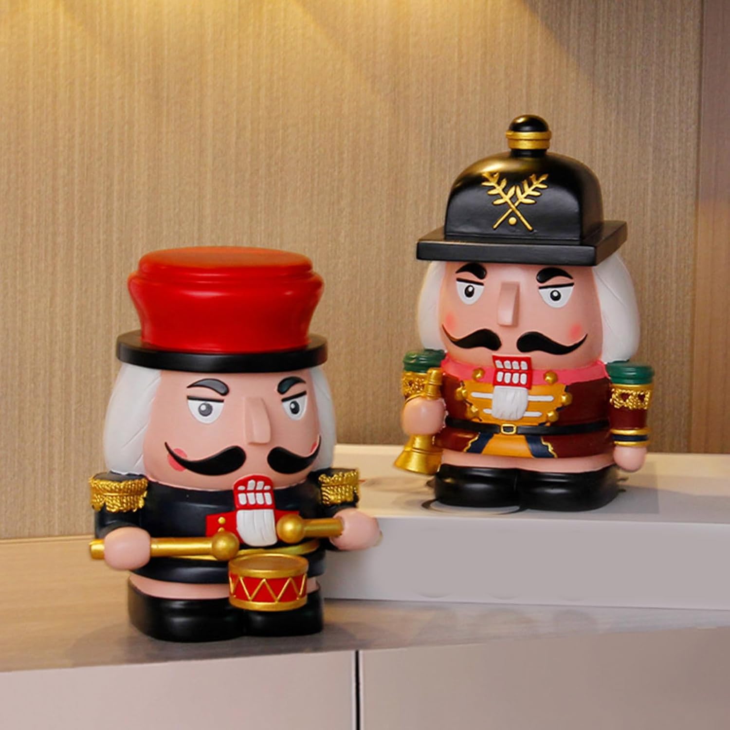 sulla scrivania, sul tavolo davanti al tavolo o alle banche di denaro visualizzate che incoraggiano il periodo natalizio Statuetta natalizia con incantevoli schiaccianoci per denaro, mix di tradizione e funzionalità che servono come decorazione per le vacanze Abbraccia la festa con schiaccianoci statuetta banca di denaro, collezione decorazioni natalizie e porta meraviglie casa Realizzati in resina, questi schiaccianoci non sono solo decorativi Per i bambini e gli adolescenti che vogliono assolutamente imparare il valore del risparmio, questo schiaccianoci serve le banche dei soldi come un eccellente strumento educativo, mentre gli adulti apprezzeranno come oggetto da collezione