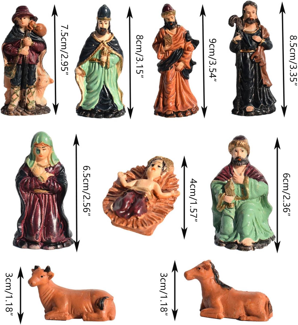 Adatto a tutti gli appassionati di Natale, sia per famiglie, uffici o negozi, questi ornamenti per la scena del presepe creano un'atmosfera calda e gioiosa Decora la tua casa in questa stagione delle vacanze con questo bellissimo set di decorazioni natalizie Questi personaggi colorati sono realizzati in resina resistente e sono costruiti per durare e facili da pulire. La dimensione perfetta per il display da tavolo, fanno un elegante complemento a qualsiasi tavolo o tavolo Indipendentemente da essere usato come decorazione da tavolo o come regalo, queste statue in resina aggiungono un tocco festoso a qualsiasi ambiente Aggiungi un tocco festivo al tuo arredamento delle vacanze con questi personaggi del presepe. Dipinto a mano con straordinario raffigurante la scena del presepe splendidamente