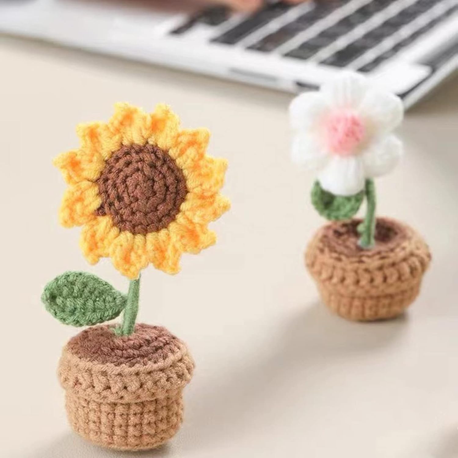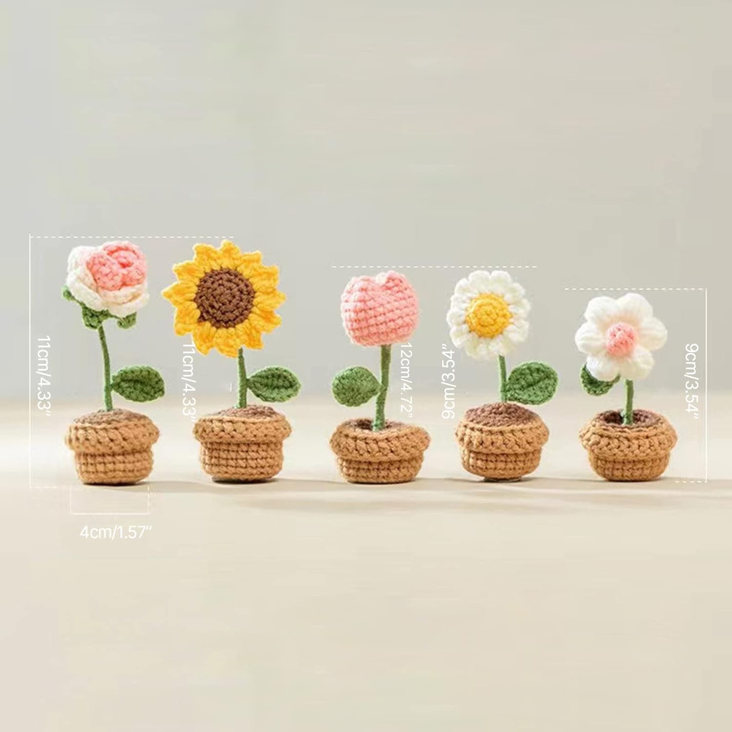 UNQIUE: i vasi a maglia di fiori, foglie e basi in vaso hanno bei colori e sono decorazioni speciali per la casa Occasioni adatte: le piante in vaso a maglia possono essere utilizzate per decorare la decorazione dell'ufficio, la decorazione della camera da letto, la decorazione dell'auto e altri Piccole dimensioni: le piccole dimensioni non occupano spazio e rendono la casa più accattivante Tessuta a mano: la pianta da fiore in misto cotone, tessuto a mano, non sbiadisce e può essere utilizzato Ottima idea regalo: ottimo regalo per un amico
