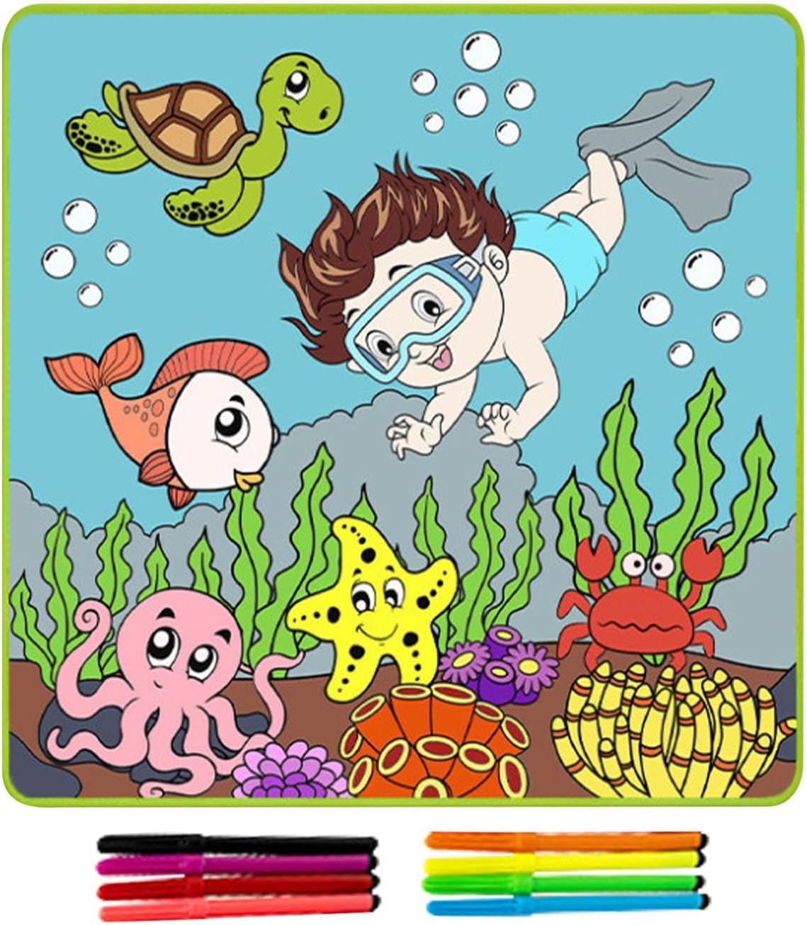 Intricate Cartoon Undersea World Design: The large coloring poster features an exciting, detailed undersea world theme, with various sea creatures like fish, turtles, and coral reefs, providing children with a captivating and educational experience Reusable and Eco-Friendly Drawing Mat: This drawing mat is designed to be reusable, allowing kids to erase their previous artwork and start fresh whenever they like. It's an environmentally friendly solution that eliminates the need for Complete Set with 8 Colorful Pens: The set includes 8 , vibrant color pens that provide a wide range of hues for kids to experiment with. These easy-to-hold pens are perfect for small hands and allow children to explore different color Educational Benefits for Kids: This coloring activity helps children develop essential skills such as hand-eye coordination, , and fine motor abilities. It also encourages color recognition and enhances their ability to stay engaged with creative Versatile for Home and School Use: Whether you're an interactive activity to keep your child entertained at home or a classroom tool that encourages group creativity, this large drawing mat is perfect for all settings. It provides a wonderful