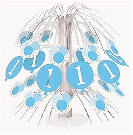 1 centrotavola a cascata per il primo compleanno a quadretti blu Il centrotavola misura 22 cm di altezza Presenta strisce in lamina d'oro a cascata e ritagli blu numero 1 Decorazione ideale per una festa di primo compleanno a tema blu Combina con altre forniture per la festa del primo compleanno di quadretti blu di Unique Party