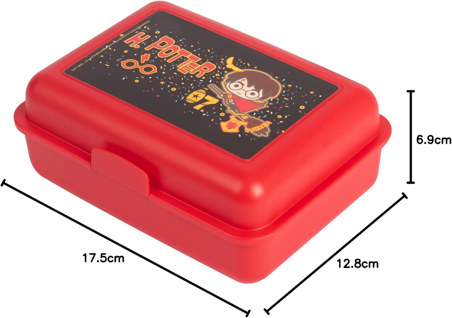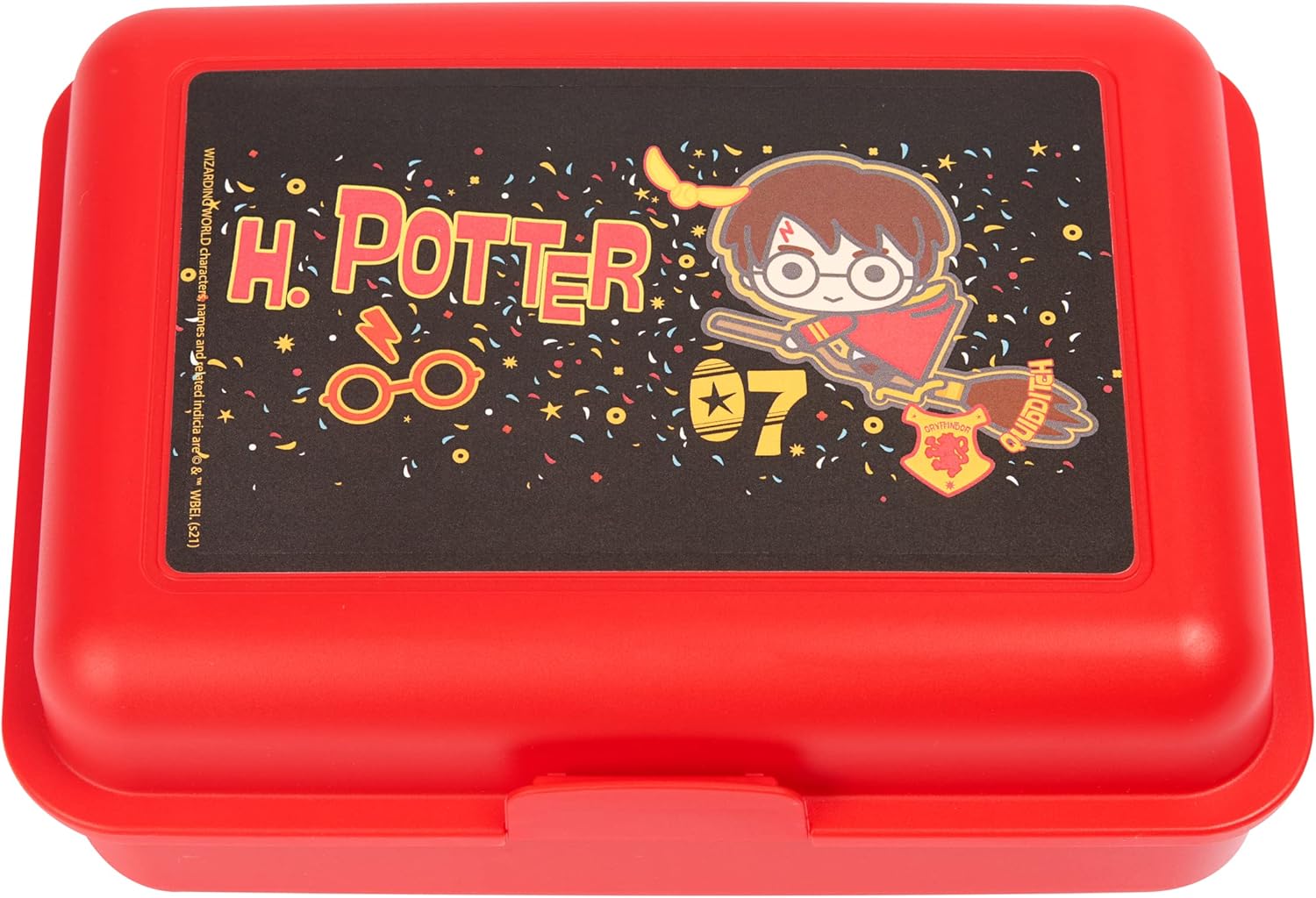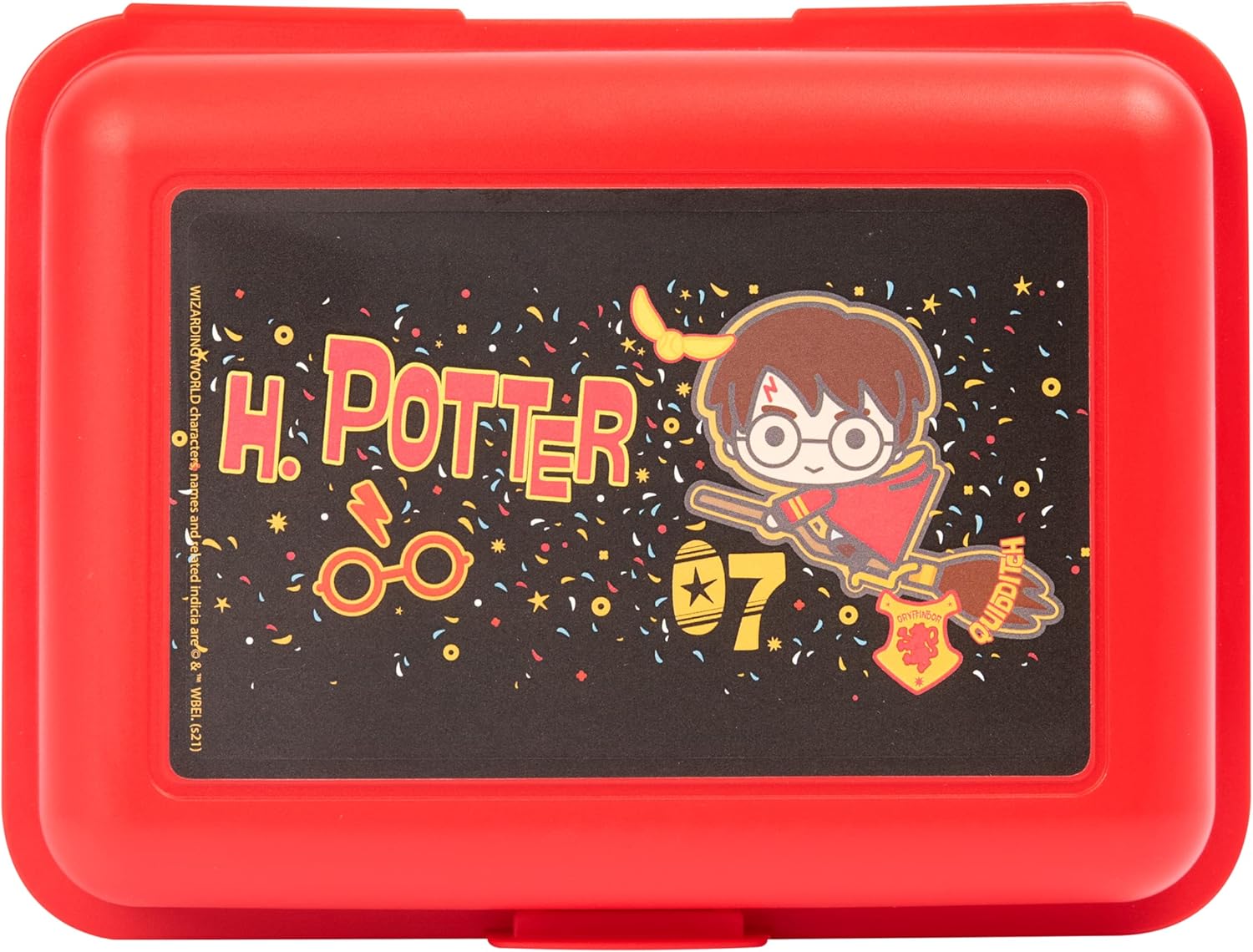HARRY POTTER BROTDOSE: il contenitore per il pranzo con il motivo Harry Potter Quidditch è un ottimo contenitore per il pane per bambini e adulti. Assicura la ristorazione dei veri fan in ogni situazione quotidiana. Ben fornito in viaggio: la pratica scatola di plastica si adatta a qualsiasi cartella, zaino e borsa. Sia per il trasporto a scuola o in ufficio, il pane è al sicuro. Con scomparti: il contenitore per il pane con divisorio flessibile può essere conservato comodamente senza mescolarlo. Ciò consente di portare con sé un pane al burro e frutta in una scatola. Lavabile in lavastoviglie: il contenitore per il pranzo convince grazie alla caratteristica di lavabile in lavastoviglie. Il bellissimo motivo rimane inalterato anche dopo il risciacquo. Qualità: il prodotto con licenza ufficiale Harry Potter è un contenitore per il pranzo di prima classe in robusto polipropilene e ha le dimensioni di 17,5 x 12,8 x 6,9 cm.