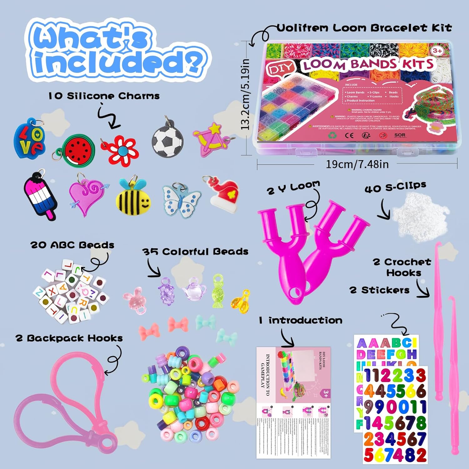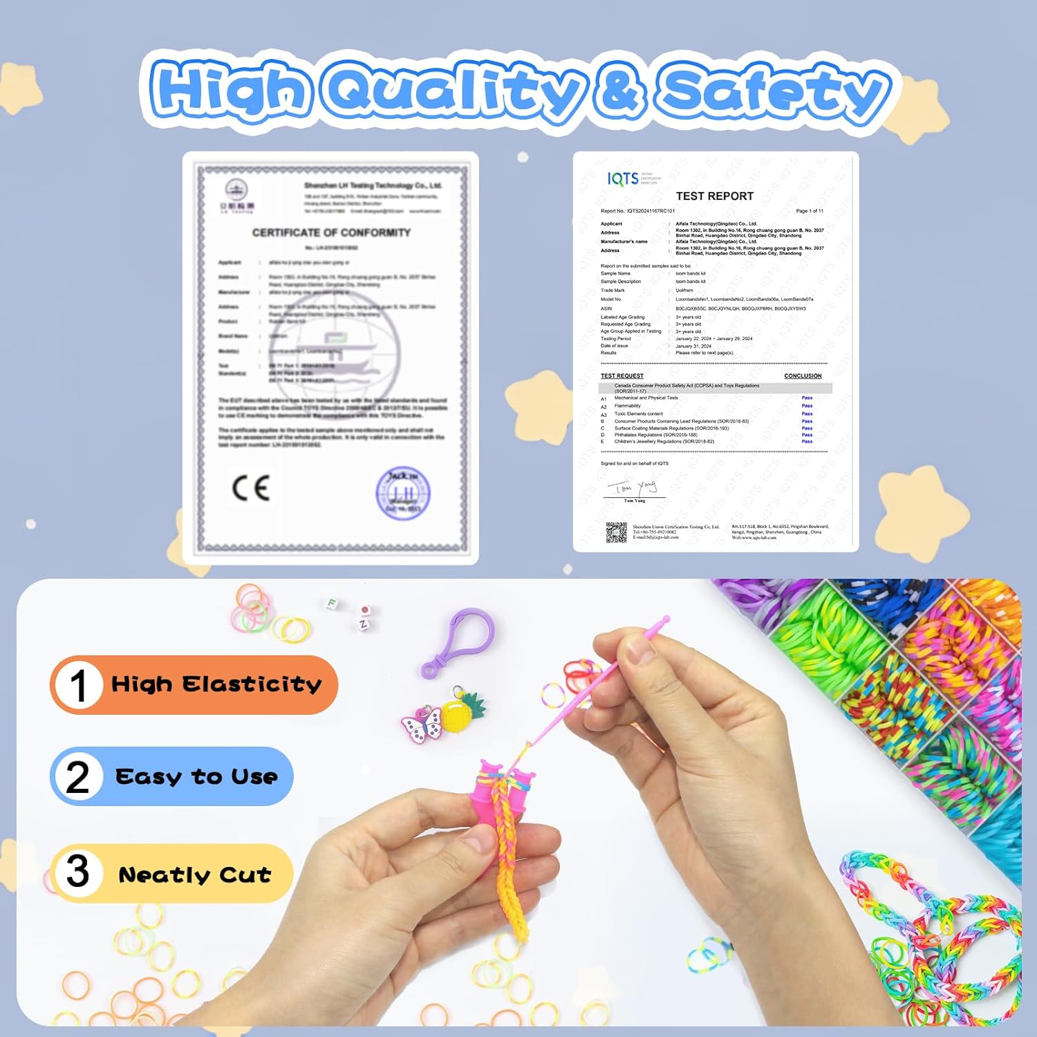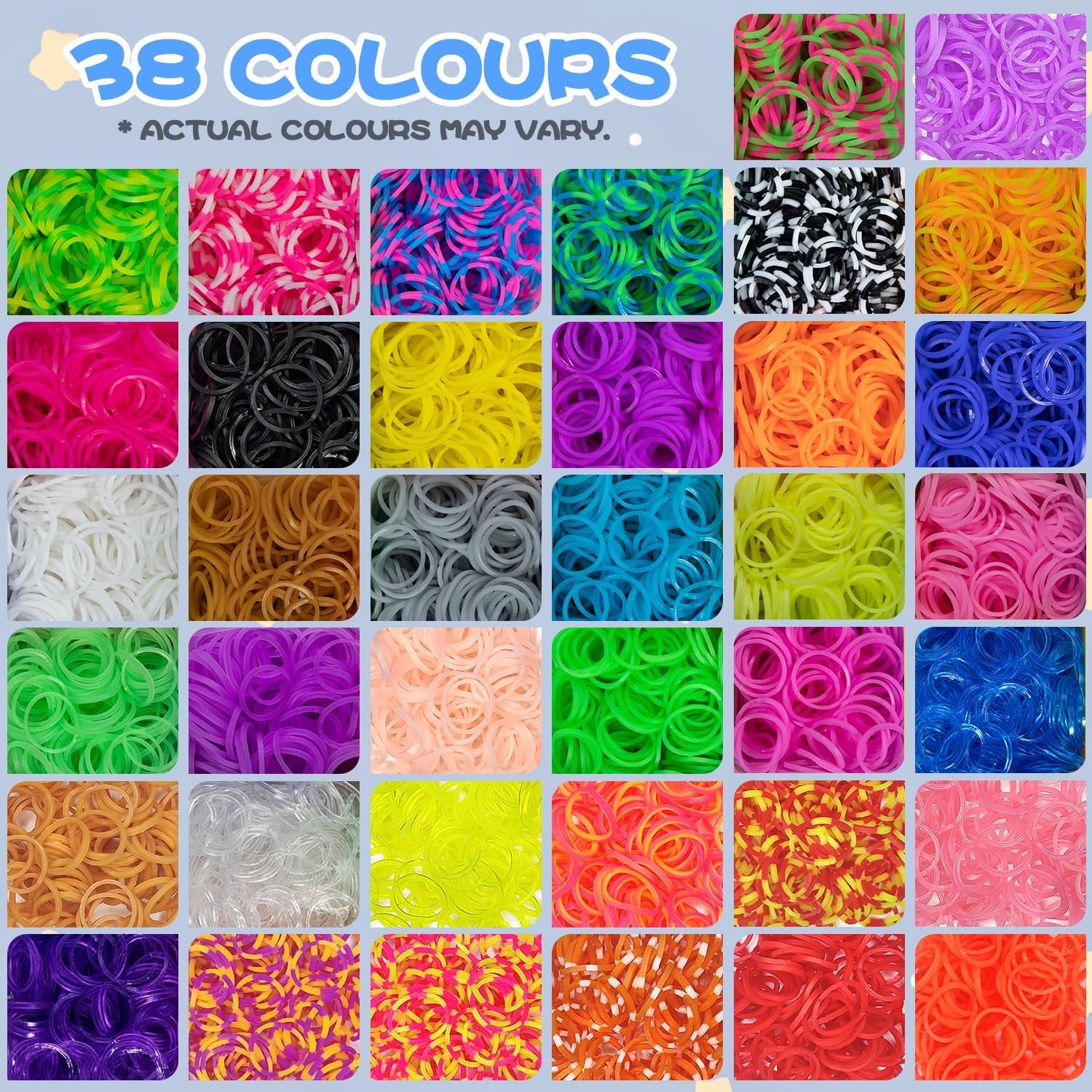 Un numero sufficiente di elastici colorati: 38 colori di elastici colorati, tra cui. 16 colori solidi, 5 colori trasparenti, 4 colori fosforescenti, 13 colori tie-dye. Nota: i 4 colori fosforescenti si illuminano al buio dopo circa 10 minuti di esposizione alla luce. Il set di braccialetti elastici è perfetto per i bambini che amano gli accessori e amano indossare oggetti colorati e creativi. Gomme da telaio sicure e di alta qualità: Gli elastici braccialetti sono realizzati con coloranti atossici, privi di lattice, piombo e ftalati. Sicuri, atossici e inodori, gli loom bands sono stabili ed elastici e non si strappano quando vengono uniti. Le parti in plastica sono prive di bordi taglienti per un uso più sicuro. Creatività, immaginazione e concentrazione: braccialetti di elastici fai da te bambini non solo li terranno lontani dai videogiochi, ma permetteranno loro di immaginare e sperimentare pienamente il divertimento del crafting e di migliorare la concentrazione. Che si tratti di braccialetti, collane, anelli, piccoli ciondoli o altro, i bambini possono sbizzarrirsi con la loro creatività. Elastici per braccialetti per ragazze e ragazzi: oltre 2400 nastri per telaio, 2 adesivi, 40 clip a S, 2 ganci per zaino, 20 perline ABC, 35 perline colorate, 10 ciondoli in silicone, 2 ganci per uncinetto, 2 Y-Loom, 1 manuale di istruzioni.Potrete anche trascorrere del tempo di qualità insieme al vostro bambino facendo dei lavoretti con questo elastici colorati! Kit braccialetti elastici e bellissimo regalo: I rubber bands sono divisi in una scatola di plastica per essere chiusi, aperti e trasportati. I diversi elastici sono ordinati per colore in scomparti individuali. Questo elastici per braccialetti per bambini è perfetto per i principianti e per i più esperti ed è anche un'ottima scelta per un regalo o una festa con gli amici.