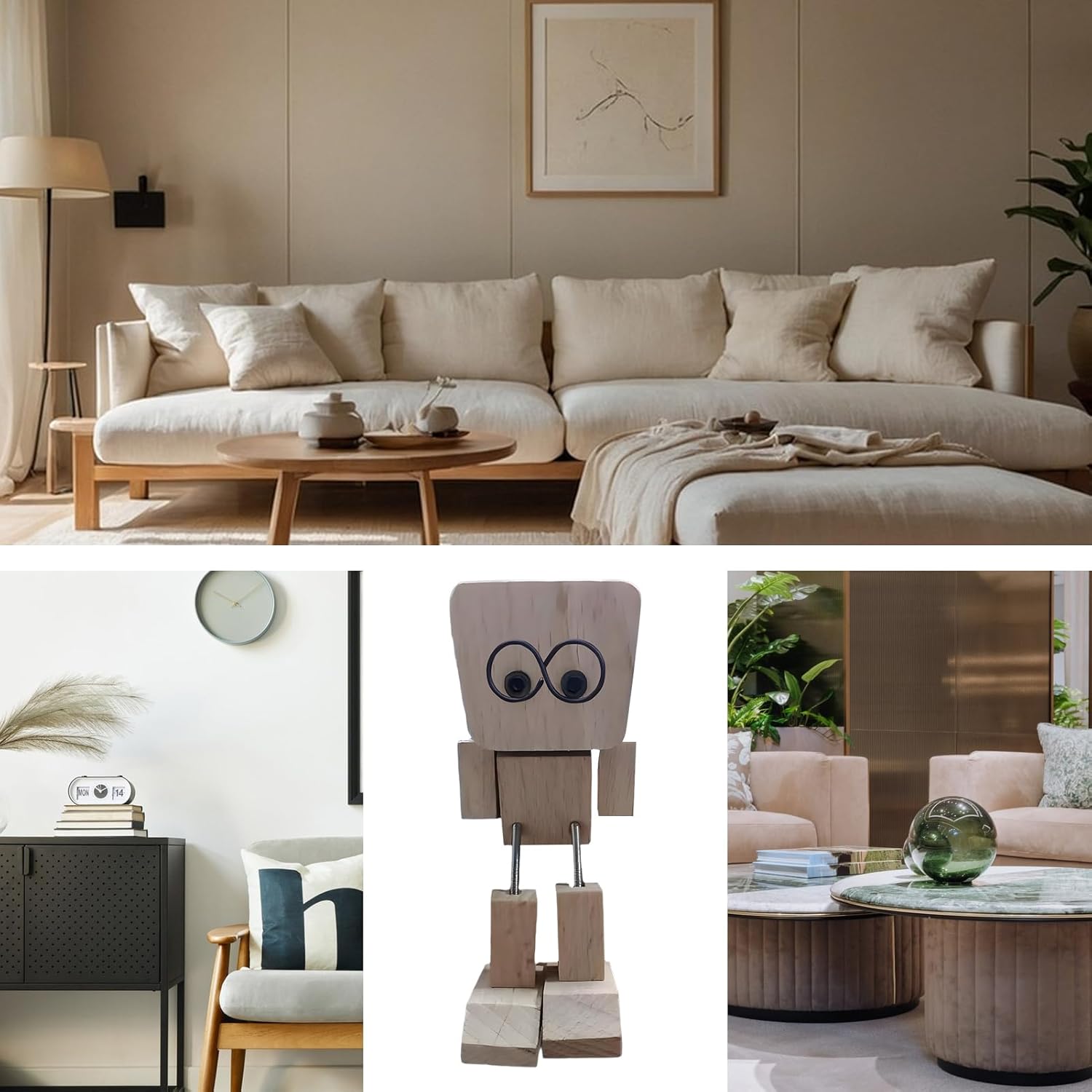 Decorazione pratica: l'omino in legno funge da accessorio decorativo per librerie e banchi da lavoro, nonché da pratico compagno di viaggi e gite. Può essere facilmente posizionato sulle superfici e combina un design accattivante con l'idoneità quotidiana per l'auto, a casa e in viaggio. Portabilità compatta: queste figure in legno sono progettate specificamente per la massima portabilità e offrono una forma adatta ai viaggi che consente ore di gioco fantasioso, a casa, al parco o fuori con la famiglia. Il suo pratico formato garantisce divertimento di gioco illimitato senza restrizioni. Divertente design oscillante: questa figura a dondolo in legno colpisce per il suo divertente movimento oscillante interattivo, che viene attivato da sottili vibrazioni. Offre un'aggiunta giocosa alla decorazione del tuo posto di lavoro o del soggiorno e garantisce volti sorridenti ogni giorno. Materiale resistente all'usura: la struttura robusta previene i danni e garantisce una funzionalità duratura, sia come giocattolo in soggiorno che come elemento decorativo negli ambienti d'ufficio. Supporto emotivo: come naturale miglioramento dell'umore, l'omino a dondolo in legno promuove leggerezza e relax in case, uffici o aree creative attraverso il suo design stimolante per un maggiore benessere emotivo nella vita di tutti i giorni