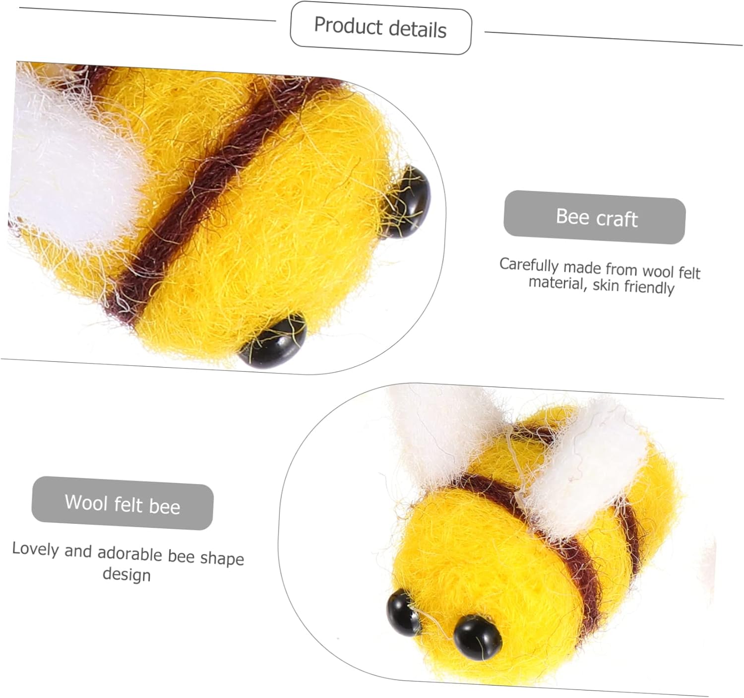 Decorazione artigianale a forma di ape: queste palline di feltro non hanno fori per perline, ma sono disponibili per essere incollate o infilate insieme con un ago, decorazione artigianale a forma di ape in feltro Costume ape artigianale: puoi usare la colla per attaccarla a borse, decorativi, sciarpe, guanti, ecc., per realizzare oggetti artigianali fai da te, costume ape in feltro di lana Artigianato ape fatto a mano: fai un unico, mostra loro il tuo e la tua preoccupazione, fai loro una piccola sorpresa, abbigliamento artigianale ape Ape artigianale: funziona bene per i lavoretti fai da te, può portare loro un sacco di divertimento e sviluppare la creatività e l'immaginazione, ape in feltro di lana Ape in feltro artigianale: scelta per fai da te, puoi usarlo per creare un bellissimo e creativo ornamento artigianale a forma di ape per i tuoi amici o familiari