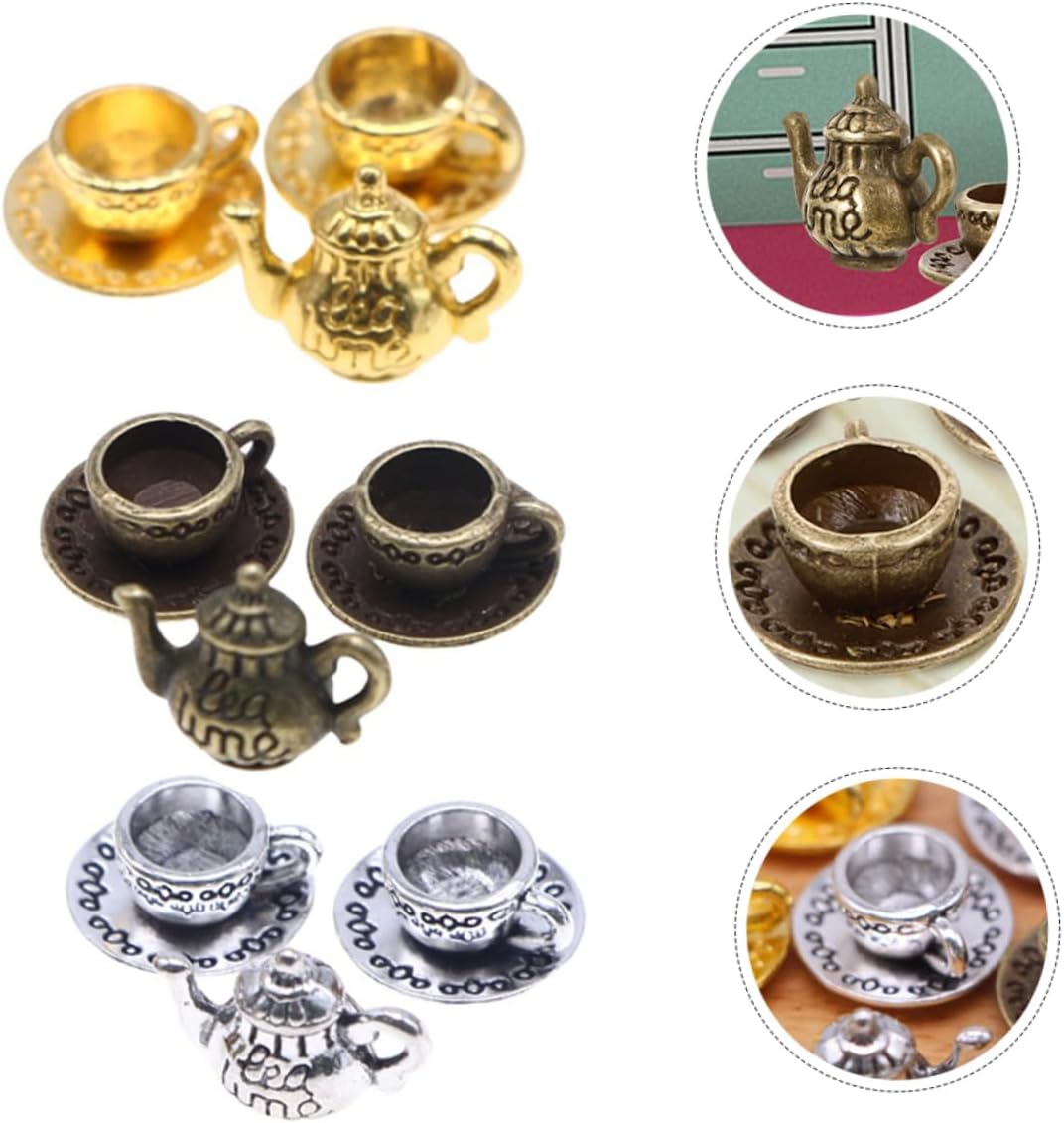 Teiera in metallo in miniatura: modelli di set da tè in miniatura finemente lavorati per la casa delle bambole, vintage, che aggiungono un tocco classico alla casa delle bambole, teiera in miniatura Utensili in miniatura: adatti a vari luoghi della casa delle bambole, rendendo la tua casa delle bambole più vivace e interessante con questo mini set, mini arredamento per la casa Set da gioco da cucina: caratterizzato da colori vivaci, che offrono un vivido piacere visivo e aggiungono calore e alla tua casa delle bambole, tazza da tè per casa delle bambole Design meticoloso, attenzione ai dettagli: ogni dettaglio è meticolosamente progettato per rendere la tua casa delle bambole più squisita e perfetta, tazza da tè in miniatura, miniature per case delle bambole Mini teiera: il mini ornamento è realizzato in materiale di ferro con lavorazione delicata e buon effetto decorativo, gioco di finzione in cucina