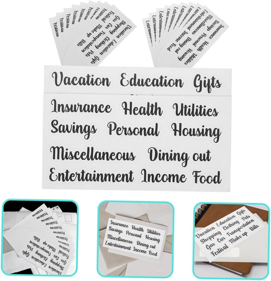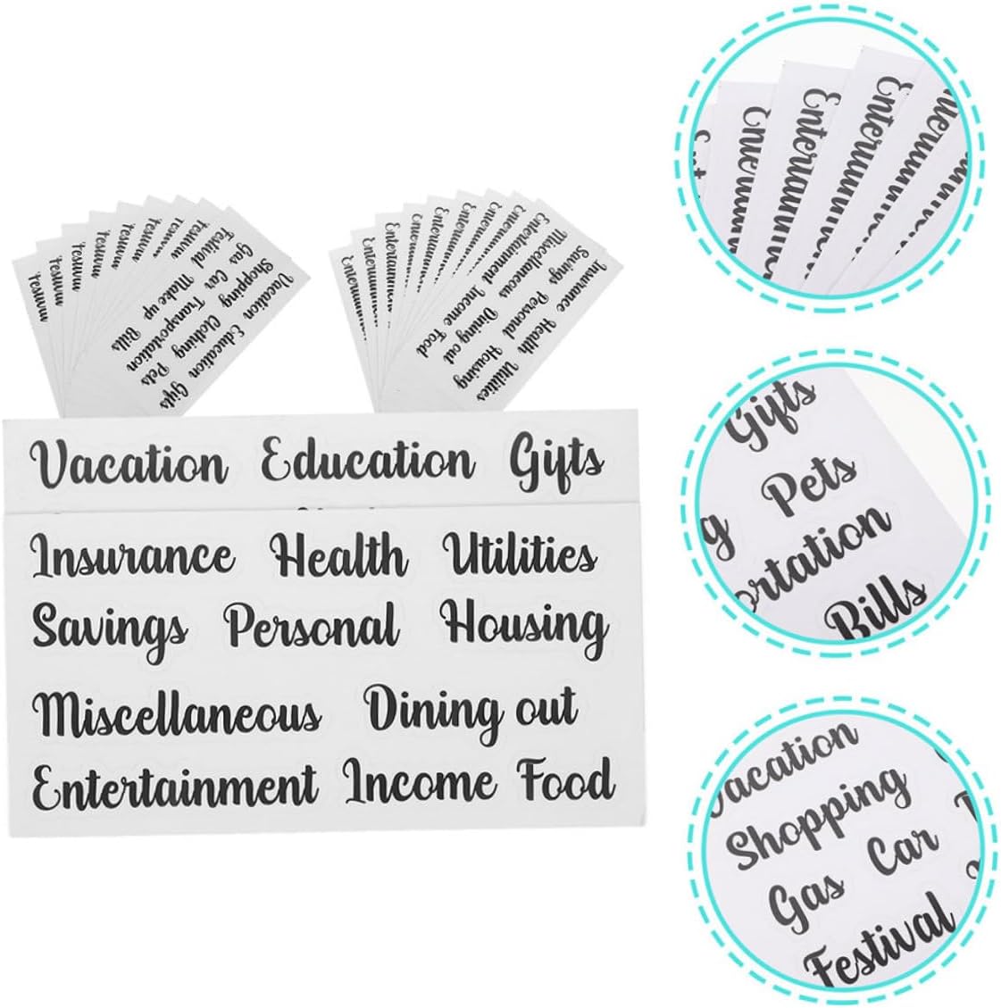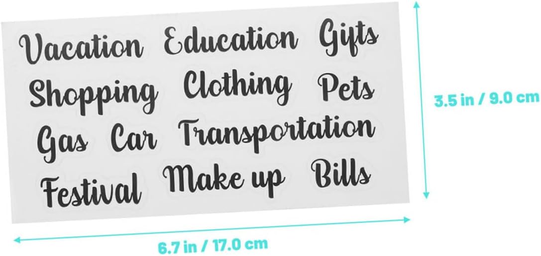 Etichette per buste portavalori di piccole dimensioni: queste etichette adesive per buste sono flessibili, possono essere applicate a lungo, leggere e facili da trasportare, etichette adesive Etichette per buste porta contanti: queste etichette adesive per buste porta contanti sono singolarmente da staccare e incollare nella tua agenda, adesivo per piccoli budget Etichetta di budget: ti aiuta a gestire i soldi e può anche essere pratica per le tue piccole etichette di budget. Etichetta adesiva portatile: puoi anche incollarla su un quaderno per un'etichettatura decorativa e persino pubblicarla sul tuo cellulare, etichetta economica autoadesiva Fornitura economica: adottano il design del carattere unico, con etichette per buste porta-contanti portatili, dall'aspetto classico nero, molto pratiche.