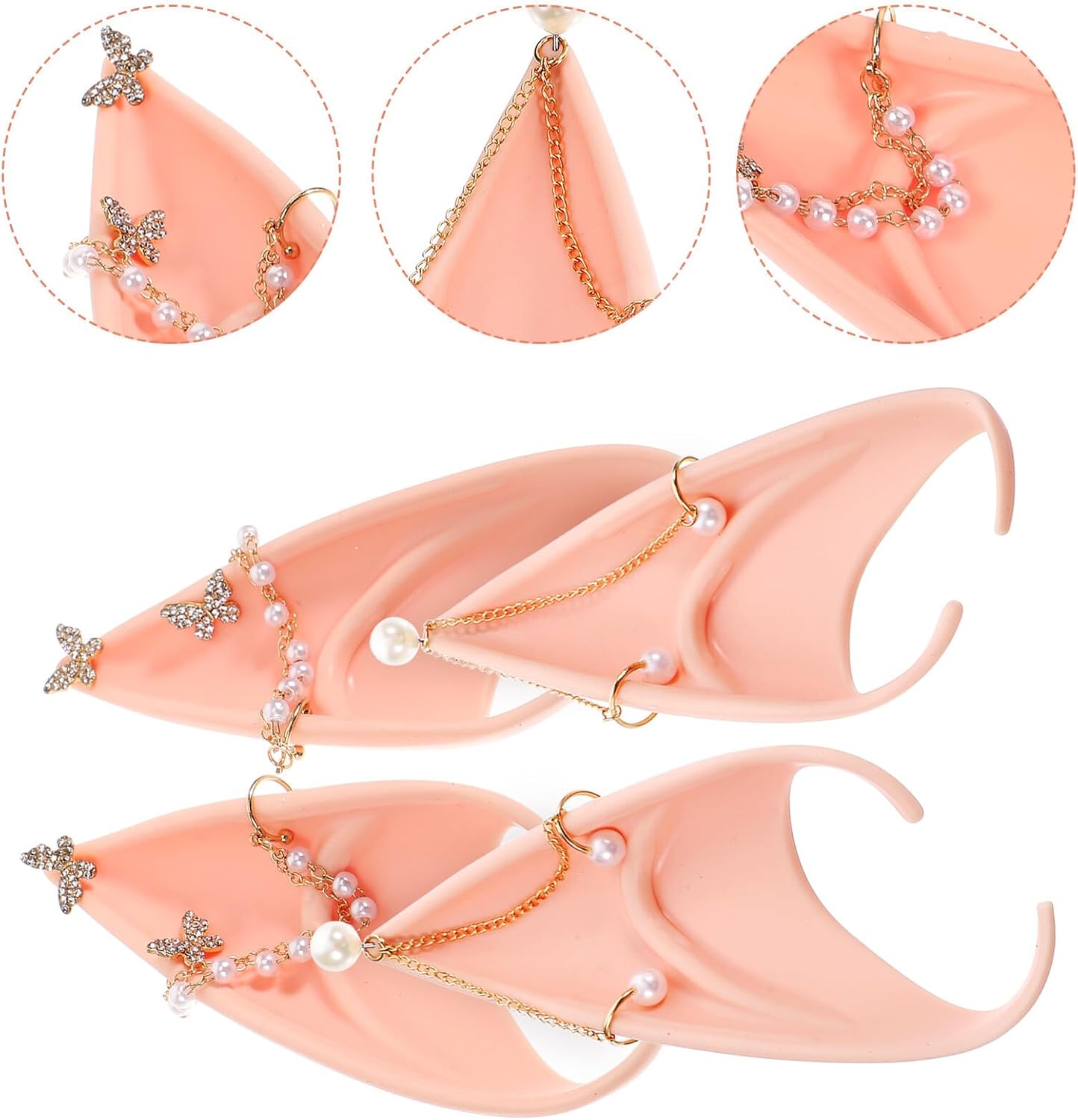 Accessori per costumi da fata: puoi indossare le orecchie da fata per spettacoli teatrali, servizi fotografici, halloween o altre occasioni speciali, costumi da fata per ragazze Orecchie da fata: le delicate orecchie da fata sono molto versatili e flessibili, possono essere indossate con quasi tutte le acconciature, gioielli da fata Accessori da fata: design delicato e unico, lavorazione meravigliosa, le orecchie sono eleganti e decorative, con decorazioni a farfalla, accessori per le orecchie Orecchie da fata in maschera: design delicato ed elegante, le orecchie sono molto eleganti e uniche, la decorazione in perle può sicuramente farti apparire impressionante tra la folla, orecchie da cosplay di halloween Accessori per il trucco da fata: possono essere ampiamente utilizzati per feste, balli di fine anno, halloween, feste cosplay, carnevale, soddisfano le tue diverse esigenze, orecchie da fata