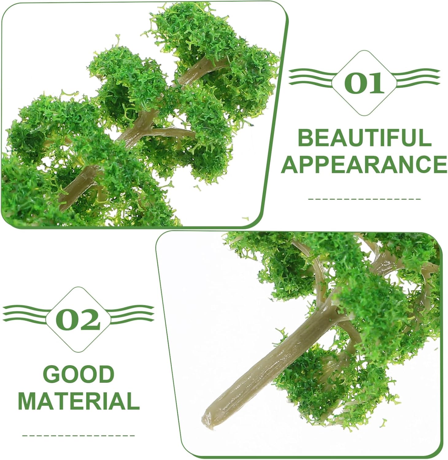 Aspetto autentico: le forme degli alberi meticolosamente progettate conferiscono un tocco realistico alle tue ambientazioni in miniatura, migliorandone l'attrattiva visiva complessiva, giocattoli per alberi, alberi in miniatura Ampia applicazione: i fiori in miniatura sono adatti per mini scene fai da te, puoi creare il tuo piccolo giardino; inoltre, possono essere applicati anche per giochi di sabbia come giochi di sabbia commerciali, giochi e altri soggetti, piante finte da paesaggio, kit di mini alberi bonsai Modello di alberi in miniatura: realizzati in plastica che offre stabilità e durata, molto duri e lisci per l'uso. tutti gli alberi in miniatura artificiali sono accuratamente lavorati, semplici ma delicati, con materiali dall'aspetto naturale, fornitura di modelli di treni Dettagli ricchi: questi alberi aggiungono profondità e complessità ai tuoi micropaesaggi, rendendoli più coinvolgenti e visivamente interessanti, piante in miniatura, accessori per modellini di treni Uso adattabile: ideali per allestimenti di modellini di treni, modelli architettonici e altri display in miniatura, questi alberi possono essere facilmente spostati e riorganizzati, alberi a spazzola per bottiglie, scenari di modellini di treni