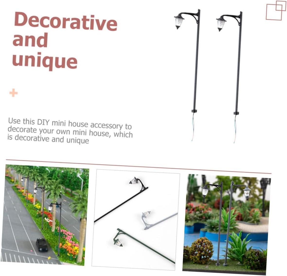 Modello di lampione da cortile: posiziona il modello del lampione su una mini casa per dettagli più realistici e un'impressione visiva diversa, modello di lampione del villaggio Lampada per modellismo ferroviario: il modello luminoso è molto utile per la progettazione e la costruzione di modellini di treni, la progettazione delle stazioni ferroviarie, ornamenti in miniatura Decorazione modello lampada - di utilizzo , un buon oggetto di scena per paesaggi in miniatura, in particolare decorazioni per paesaggi di case in miniatura, lampade da treno Lampioni modello: questo mini modello di lampione può essere utilizzato come ornamento decorativo per la tua mini casa o giardino, mini lampada da cortile Lampada da modellismo ferroviario: questo modello di lampione è un fantastico per i tuoi amici o familiari a cui piacciono i mini lavoretti, il modello di esposizione stradale con a LED