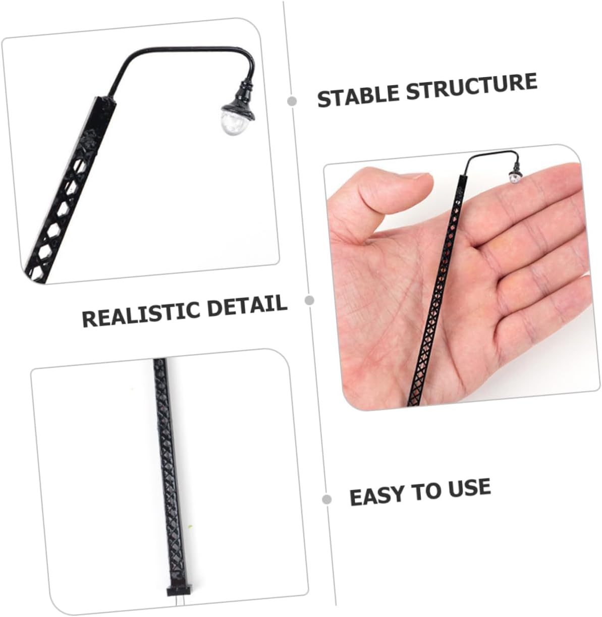 Modello di luce per il layout del treno: splendidamente realizzato e realistico, con un alto grado di riproduzione realistica, ti piacerà, materiali per tavolo di sabbia Ferroviarie in miniatura: lavorazione artigianale di alta qualità e buon processo, il modello di luce ferroviaria non è facile da deformare e danneggiare, accessori per modellini di treni Supporto per tavolo da sabbia: può essere utilizzato come supporto fotografico per scattare delle foto, lampada decorativa e a forma di treno ferroviario Modello di lampione in miniatura: un perfetto per i tuoi amici a cui piacciono i modelli di case in miniatura, oggetti di scena decorativi e speciali, lampade per modellini di treni ferroviari Decorazione per lampada da traffico in miniatura: le dimensioni in miniatura rendono il modello di lampada da facile e comodo da usare, trasportabile ovunque tu vada, modello di scena di lampada