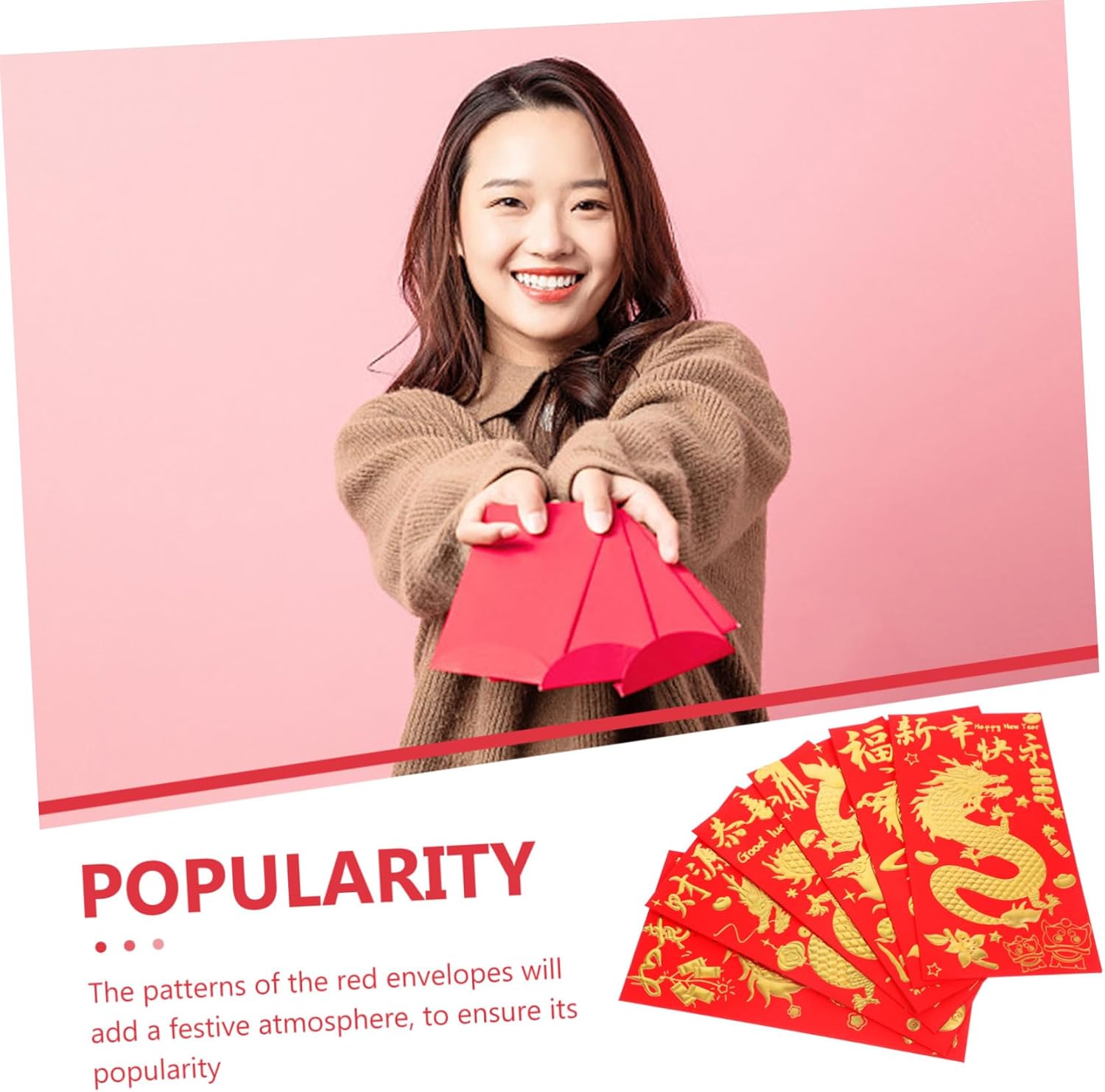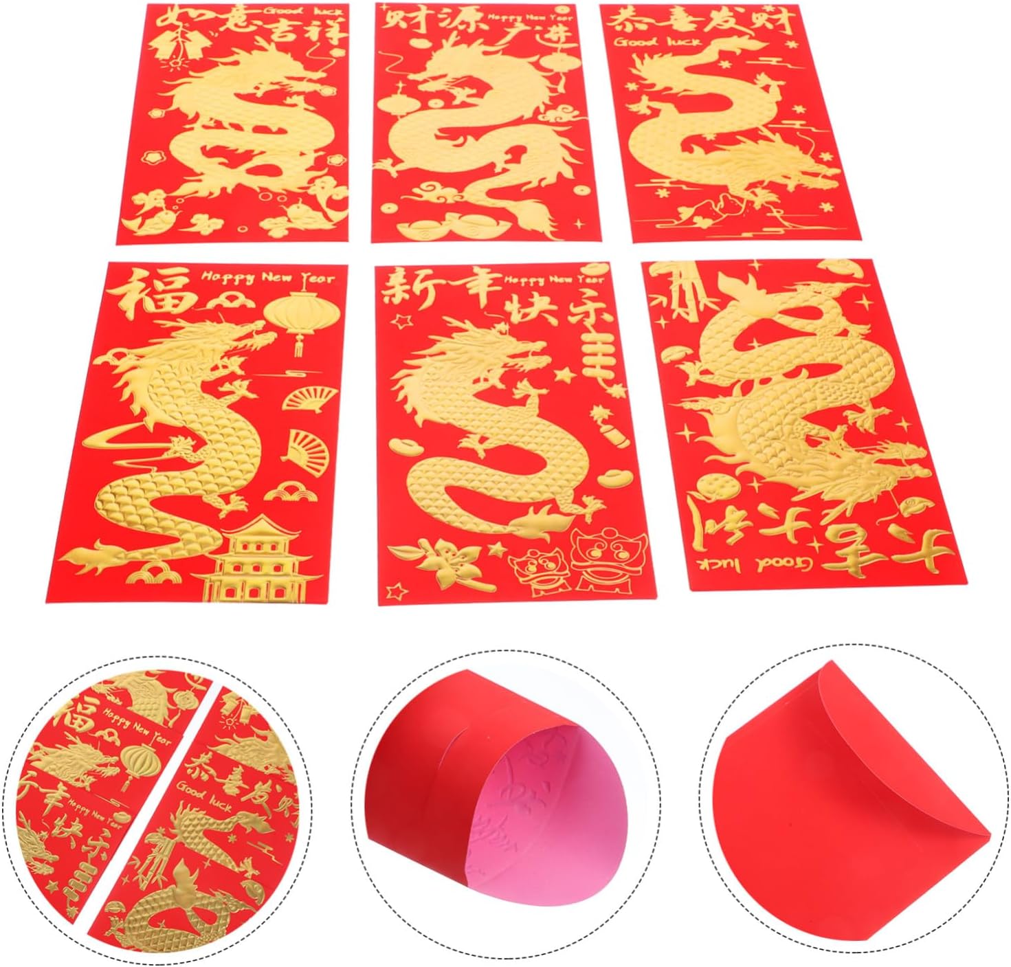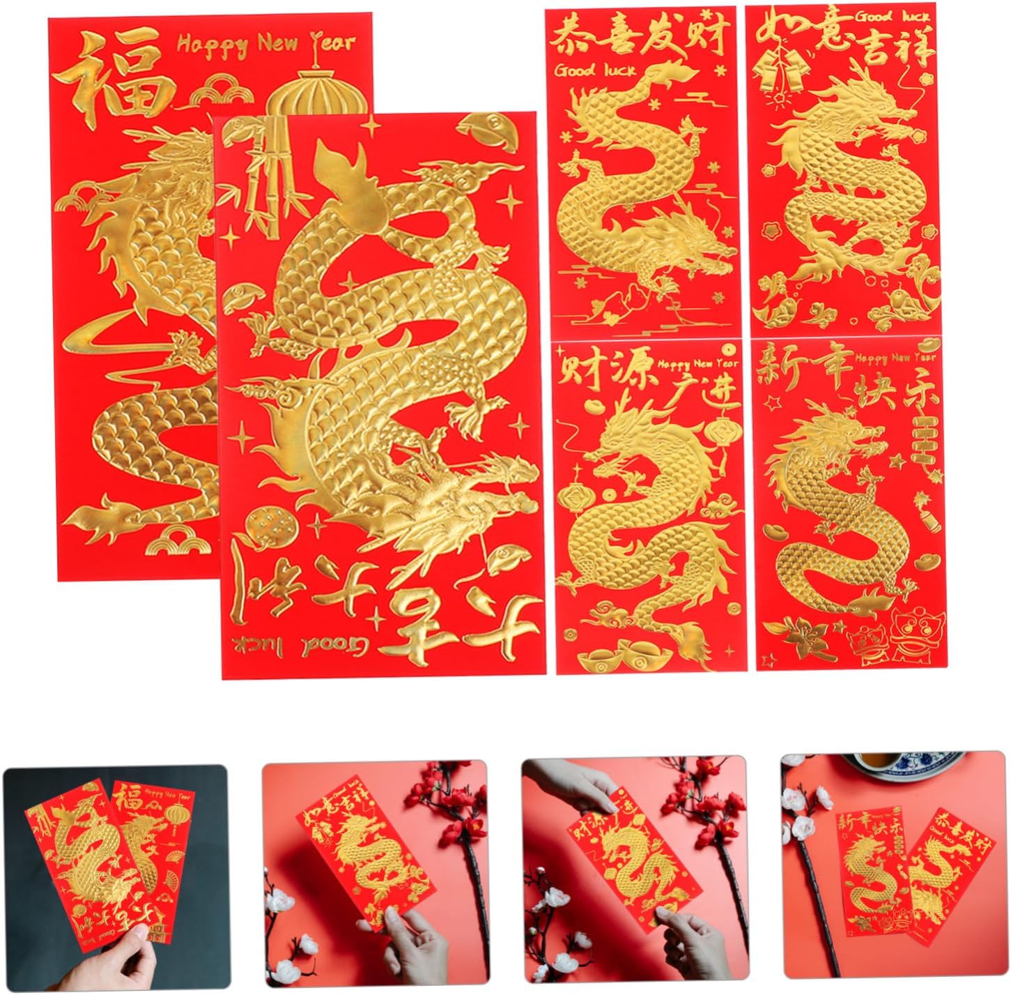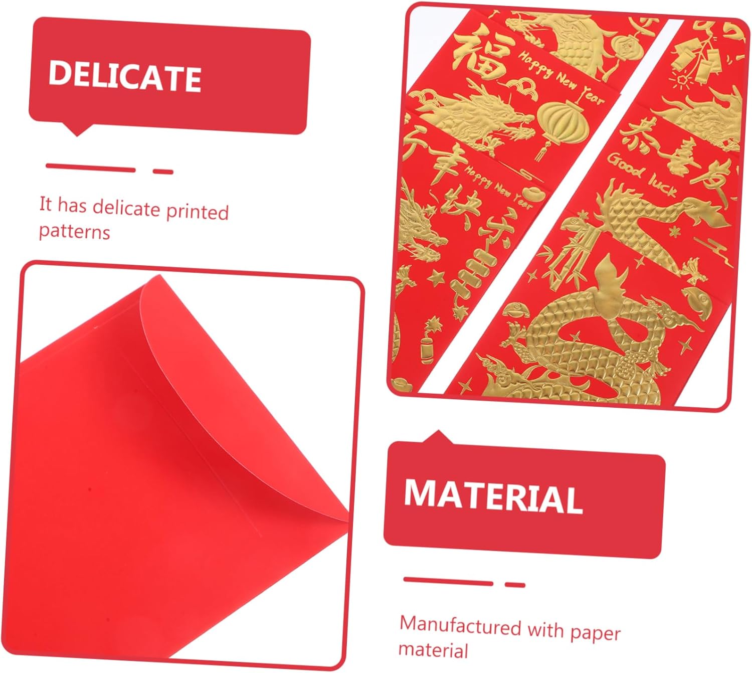 Busta rossa: con lavorazione pregiata, la busta non è facile da strappare, queste buste rosse sono leggere, facili da portare con sé, pacchetti rossi di capodanno Buste rosse per la festa di : puoi metterci dentro un po' di soldi, piccoli gioielli, piccoli biglietti di auguri e così via in modo più sicuro, regalando al destinatario una sorpresa, buste rosse cinesi Busta con motivo a drago: le buste con parole delicate e motivi sono uniche ed ereditano la cultura tradizionale cinese, di capodanno Sacchetto porta soldi rosso portafortuna: non solo come , ma anche come opera d'arte o decorazione per la tua festa di , busta per il capodanno cinese Buste di carta drago rosse: i motivi delle buste rosse aggiungeranno un'atmosfera festosa, per garantirne la popolarità, tasca porta soldi rossa