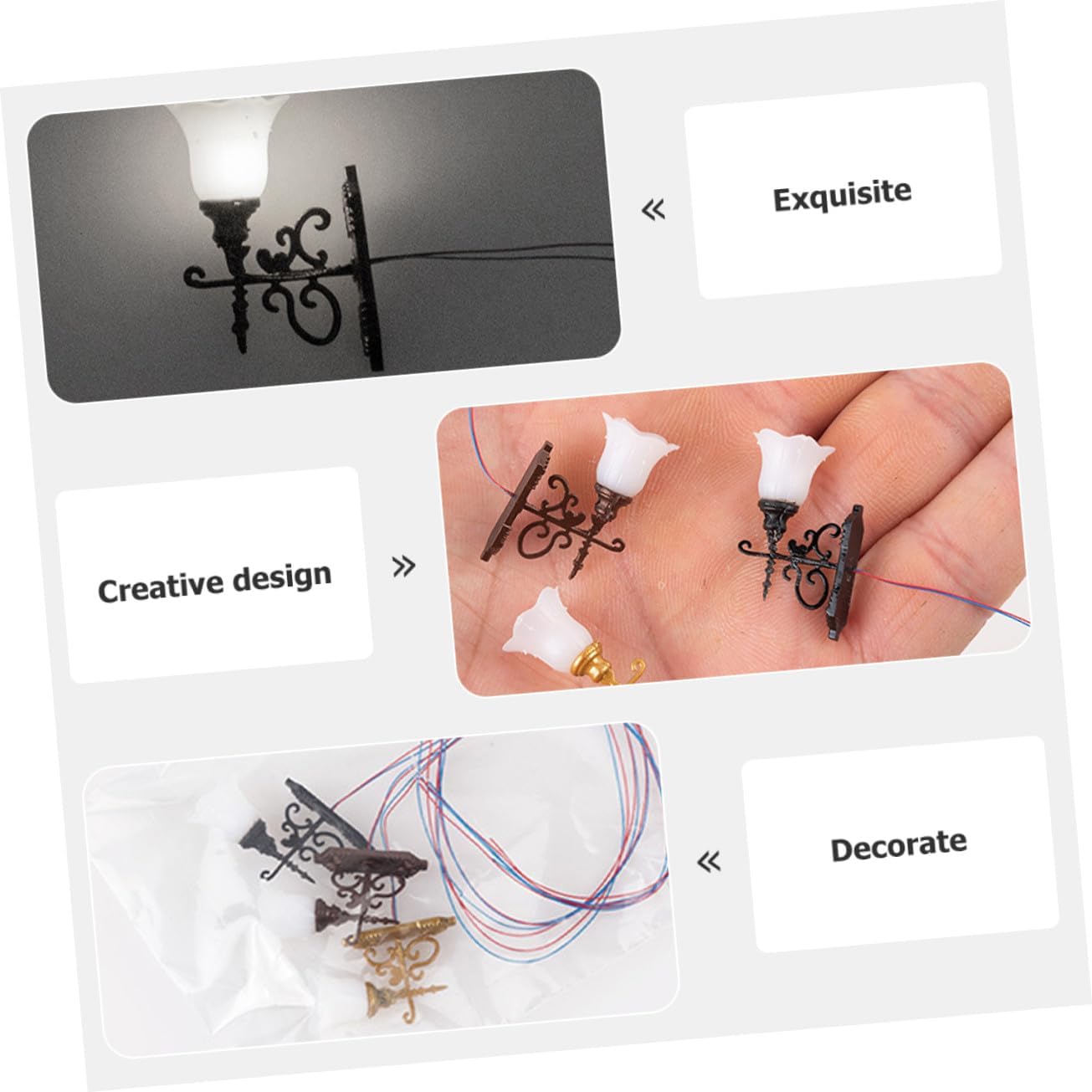 Lampada da scena in miniatura - Le lampade da parete in miniatura sono facili e comode da portare ovunque, materiali da tavolo in sabbia. Lampioni stradali modello - Il modello di lampada da parete è realizzato in materiale resistente ed è adatto per le persone che giocano. Simulazione di una mini lampada. Ornamento da scrivania - generalmente utilizzato per la decorazione di scene, ha lo scopo di elevare il livello di una scena di tavolo di sabbia e di un paesaggio in miniatura. Sabbia per casa delle bambole: posizionala su un tavolo per ottenere dettagli più realistici e creare un'impressione visiva diversa. Decorazione lampada modello micro paesaggio - Il modello mini lampada da parete è realizzato in materiale molto delicato e resistente per la decorazione e il paesaggio