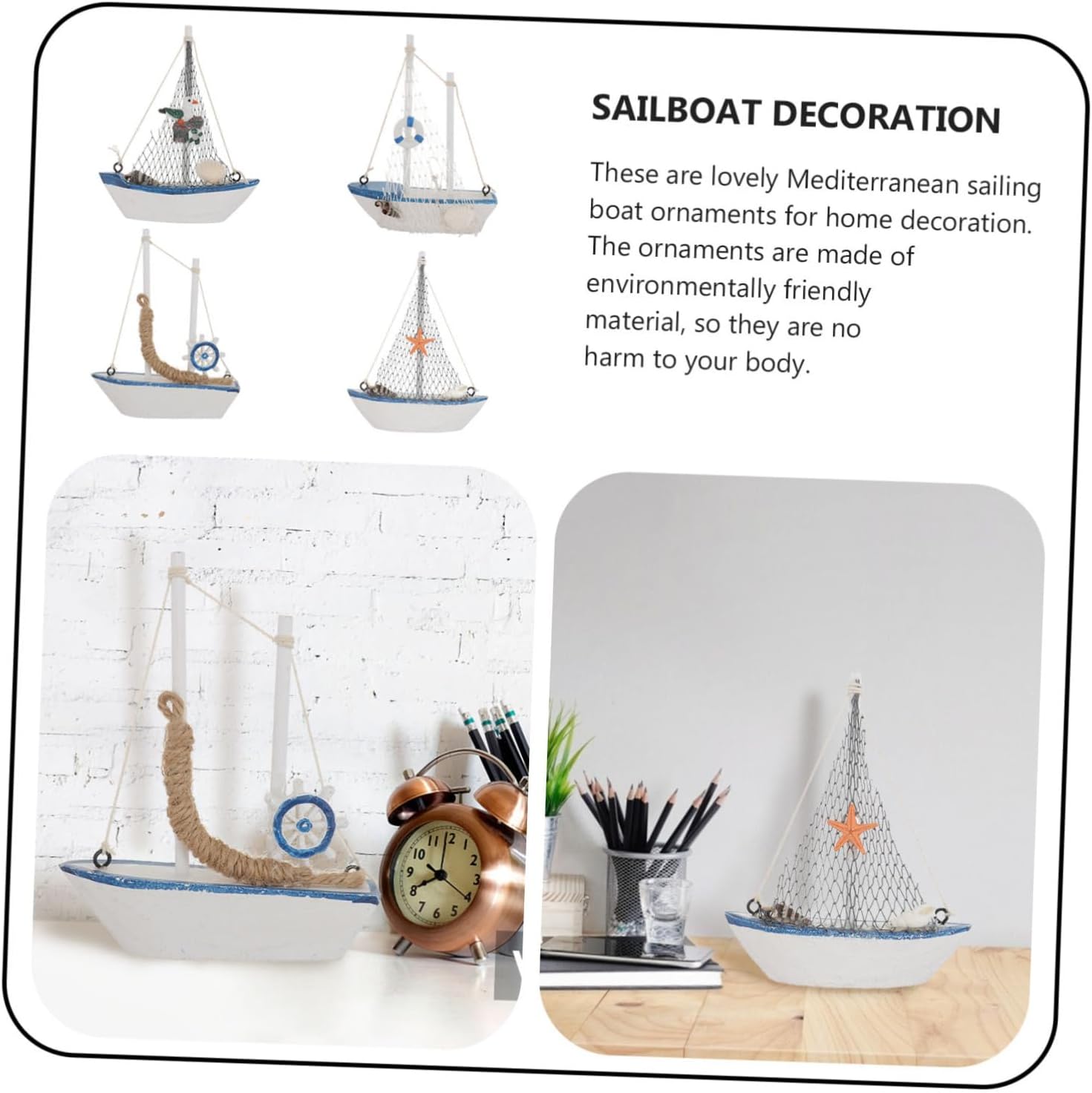Decorazione a forma di barca mediterranea: il colore è brillante e può adattarsi a piacimento alla tua casa, il concetto di design perfetto, ti fa sentire come se fossi in mare, decorazione a forma di barca a vela in legno Decorazione in stile mediterraneo a forma di barca a vela: aiuta ad aggiungere un'atmosfera domestica calda e confortevole, creativa ed elegante, modello di barca a vela mediterranea Decorazione con statuina di barca mediterranea: realizzata in legno pregiato, la statuina di barca a vela è sicura e decorativa con una buona consistenza, barca a vela in legno Decorazione di navi mediterranee: può essere utilizzata per molte occasioni, come regali di laurea, regali di compleanno e decorazioni per la casa, artigianato di barche a vela mediterranee Barca a vela in legno: realizzata con eccellente artigianale, la statuina ha un aspetto elegante e artistico, perfetta per la decorazione o l'ufficio, barca a vela mediterranea