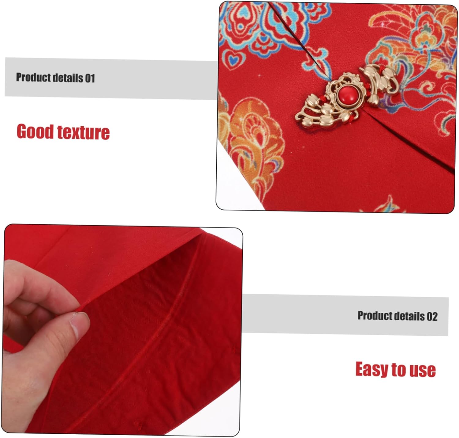culturale: evidenzia il fascino della cultura tradizionale cinese con il suo bellissimo design in tessuto Simboli gioiosi: il Dragon e Phoenix simboleggia la felicità e la prosperità Design pratico: il design della chiusura a disattivazione garantisce un facile trasporto e utilizzo Regali significativi: ideale per collocare carte o soldi fortunati per trasmettere i tuoi sentiti desideri ai membri della famiglia Occasioni festive: adatto a matrimoni, compleanni, festival e altri eventi speciali per diffondere gioia e buona fortuna