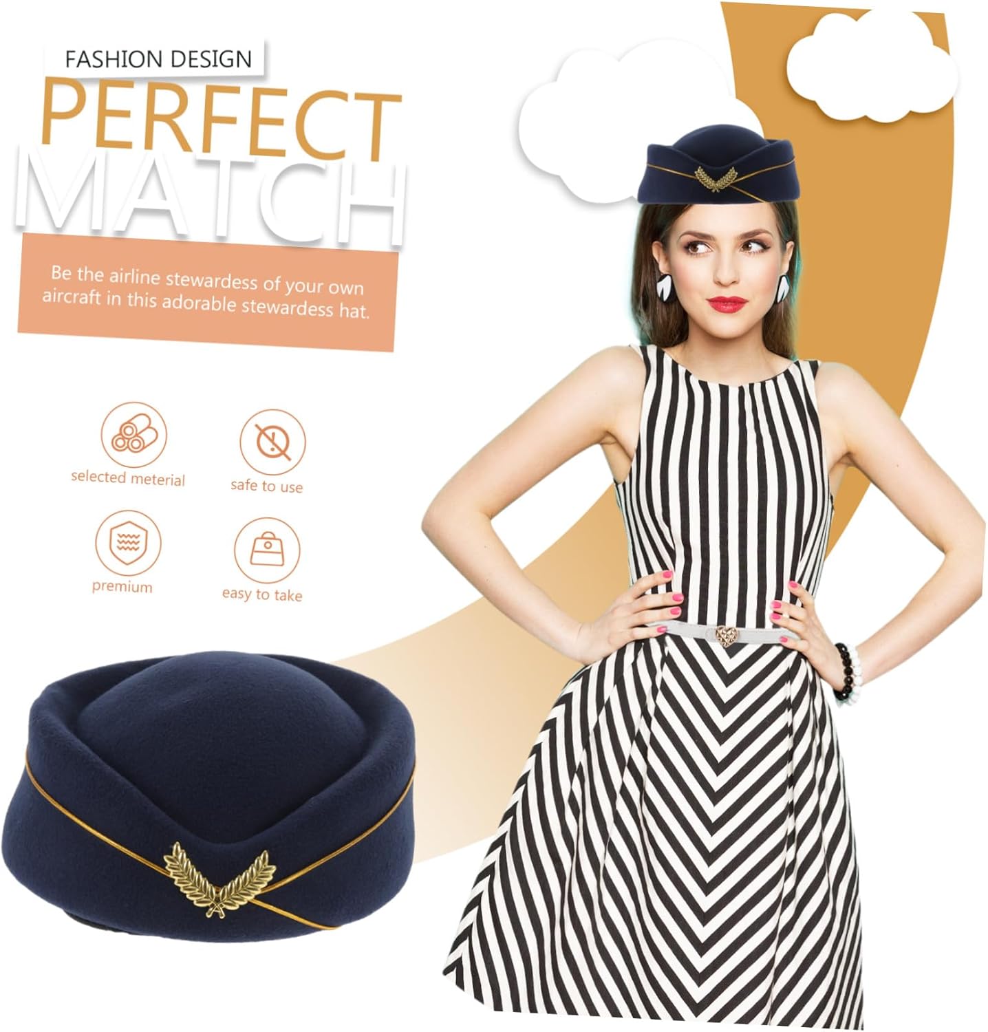 Cappello da hostess: indossa il cappello secondo lo stile dell'uniforme della tua assistente di volo, può evidenziare la tua eleganza e, accessori per costume rosa da hostess: questo cappello da hostess classico ed elegante è perfetto per la prossima festa speciale, cappello da assistente di volo con cappelli da hostess: il cappello da hostess è realizzato con materiali di alta qualità e con lavorazione artigianale e può essere utilizzato a lungo. Il cappello ha un design ergonomico e una dimensione adatta in modo che non cada dal cappello dell'assistente di volo Cappello da hostess: questo è un adatto per feste di cosplay, feste da ballo, regali di Halloween e Capodanno per donne, costume da hostess Cappelli da assistente di volo: taglia unica, consistenza super morbida per un cappello vintage comodo ed elegante