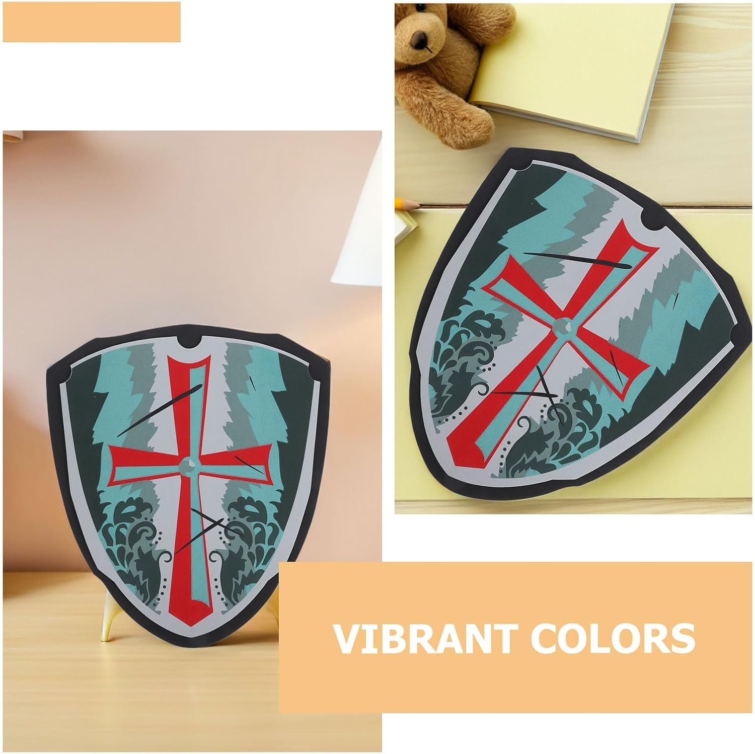 Materiale di sicurezza: Realizzato in EVA leggero, questo scudo giocattolo per bambini garantisce un gioco sicuro e previene gli infortuni È ideale come costume cosplay da cavaliere e supporto per giochi di scudi per bambini Design creativo: Le caratteristiche uniche dello scudo stimolano l'immaginazione e la creatività, fungendo da scudo decorativo e scudo da festa per un divertimento indimenticabile con lo scudo in costume durante le riunioni Colori vivaci: Il giocattolo scudo colorato attira l'attenzione dei bambini e garantisce una migliore atmosfera di festa in eventi come accessori per giochi di ruolo vichinghi e occasioni in costume medievale Portabilità: Facile da trasportare e adatto sia all'interno che all'esterno come regalo per una festa da cavaliere Lo scudo giocattolo per i bambini è l'ideale per riunioni di famiglia, attività scolastiche o feste festive. Durata: questo scudo da cavaliere per bambini è progettato per un uso frequente e rimane robusto e affidabile Fornisce intrattenimento duraturo come scudo da vestire e giocattolo per targhetta per i bambini in crescita