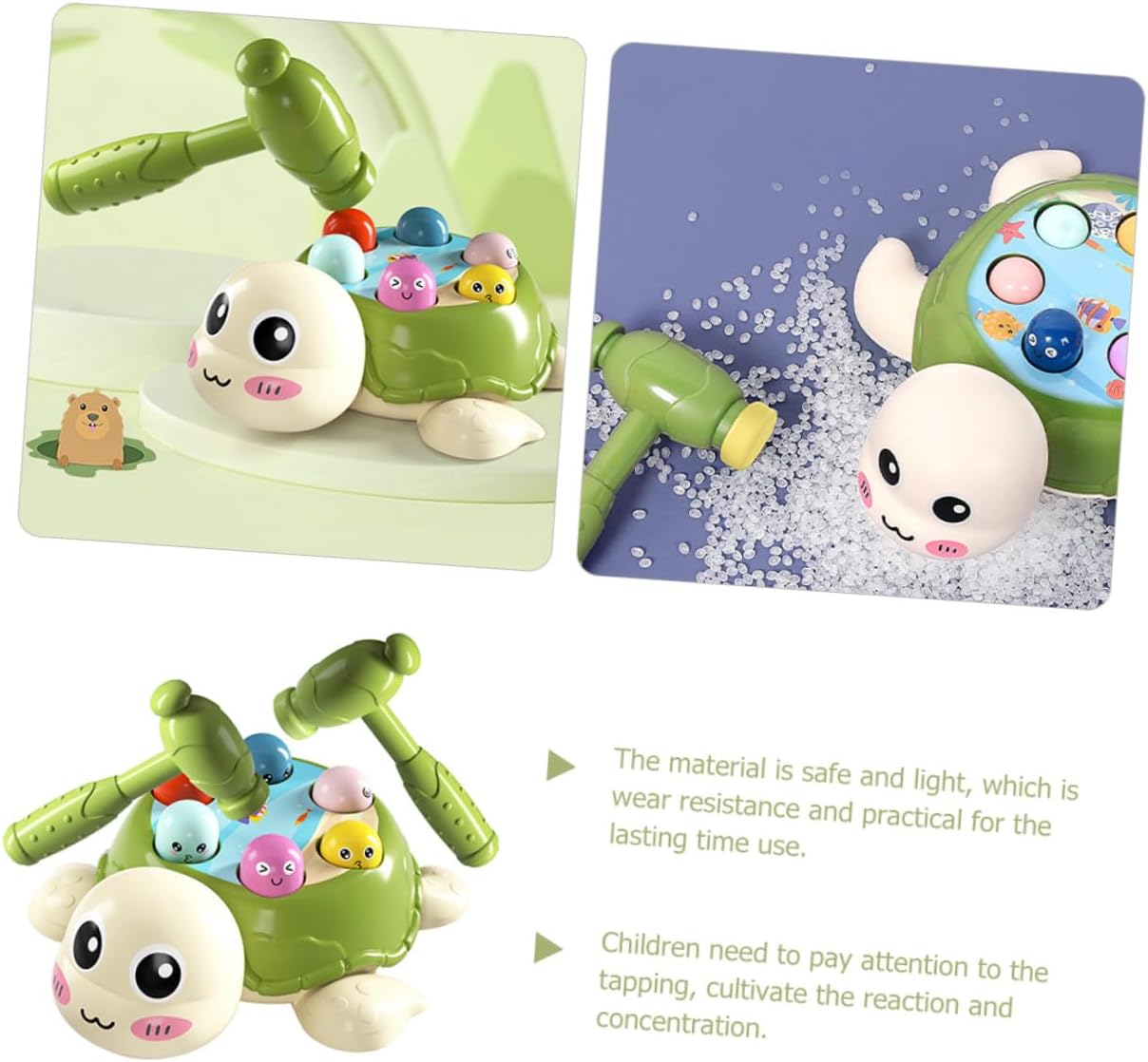 Giocattolo educativo: allenamento a tutto tondo per sviluppare il cervello del bambino e allenare la capacità di reazione del bambino. Ti piacerà questo divertente giocattolo per martellare e colpire Gioco di martellamento per - può essere usato come giocattolo per martellare e colpire e come giocattolo educativo precoce per martellare Giocattolo interattivo per martellare per - il design creativo e il gioco di martellamento assicurano che l'apprendimento con questo giocattolo per bambini - il simpatico design a forma di tartaruga con espressione da cartone animato e colori vivaci. Quando colpisci una talpa, un altro gioco di impatto salta su Gioco di impatto con martello: allena la coordinazione occhio-mano del bambino e rafforza i muscoli della mano martellando, gioco di impatto giocattolo