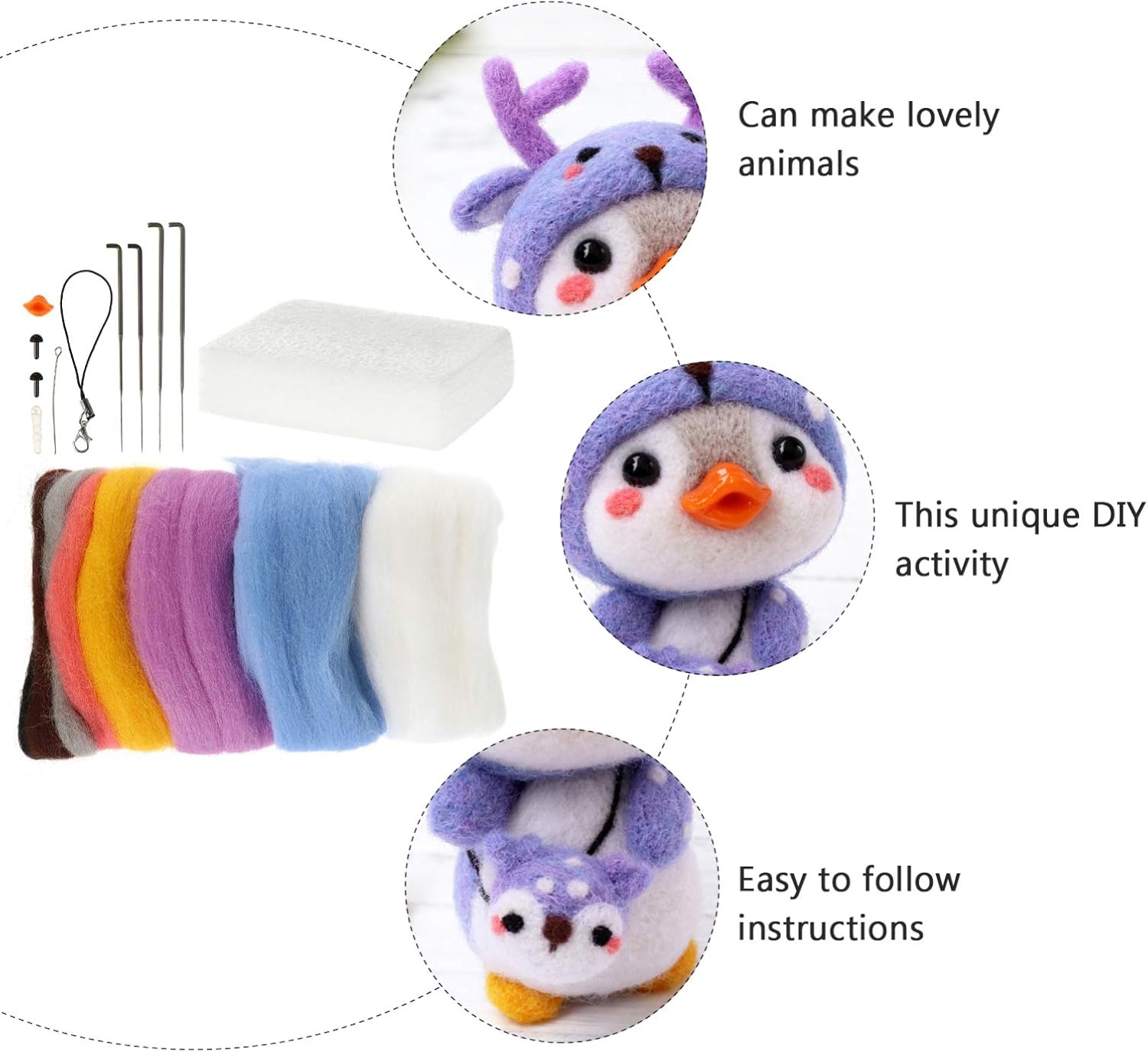 Materiali fai da te: il progetto finito può essere utilizzato per creare una scrivania, un bancone da cucina o un comodino. kit di avviamento per l'infeltrimento ad ago. Kit per principianti di infeltrimento di lana: questa attività fai da te unica stimolerà l'immaginazione dei bambini e stimolerà la tua creatività, kit per infeltrimento di lana Kit per principianti di infeltrimento ad ago: può essere utilizzato per la festa dei bambini, il compleanno, natale, la festa della mamma, ecc., kit di animali in feltro di lana Kit fai da te per infeltrimento di lana a forma di animali: questo kit per infeltrimento ad ago è facile da usare ed è perfetto per principianti o artigiani professionisti, materiale per infeltrimento fai da te Kit di infeltrimento per realizzare bambole: completo di istruzioni facili da seguire, questo kit artigianale è il modo perfetto per imparare l'infeltrimento ad ago, kit di infeltrimento fai da te