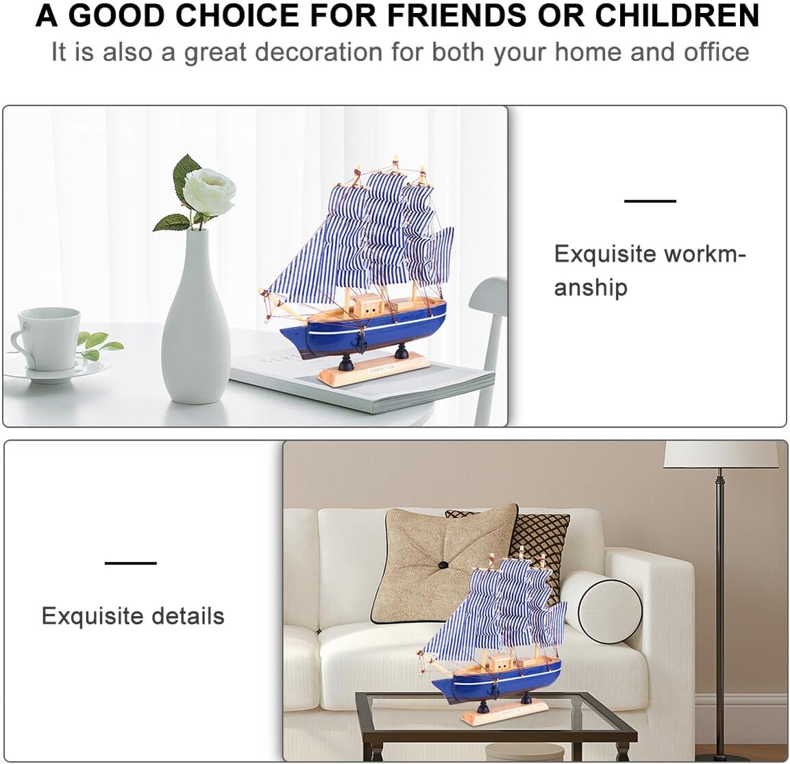 Modello di nave in legno: regalo nautico perfetto per i figli degli amici o per gli ospiti delle feste, per banchetti, ricevimenti, riunioni o qualsiasi festa o evento nautico, modello di nave Barca a vela: un modello di nave pirata speciale e unico, progettato per la decorazione della tua casa, modello di barca a vela Decorazione per la casa: modello decorativo di barca a vela, chic e alla moda, decorazione per scrivania Decorazione modello barca a vela: dettagli e, perfetto per decorare tavolo da pranzo, auto o ufficio, camera da letto e altri luoghi che si desidera decorare, modello di barca a vela creativo Decorazione per ufficio in legno: può essere utilizzata come oggetto di scena per rendere le tue foto più attraenti e vivide, decorazione modello barca a vela