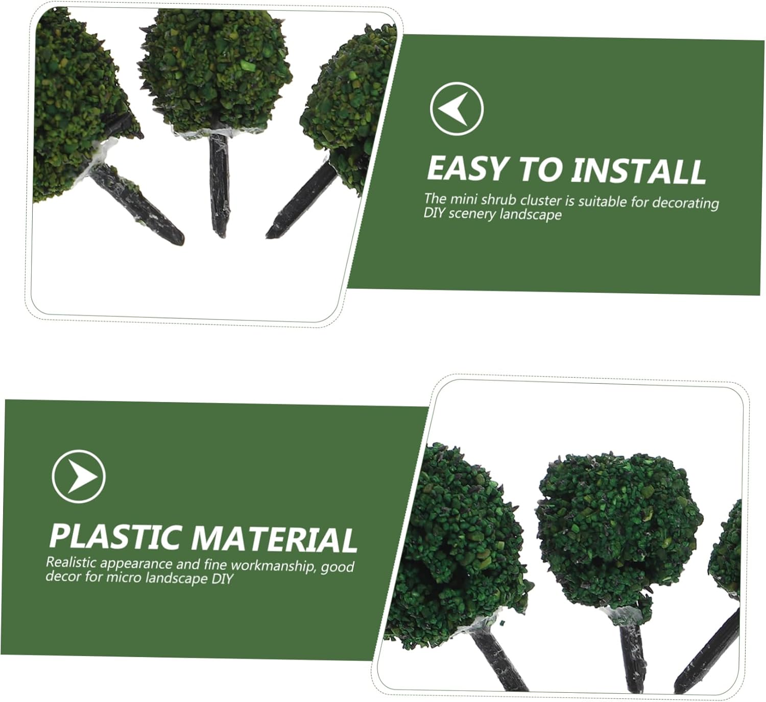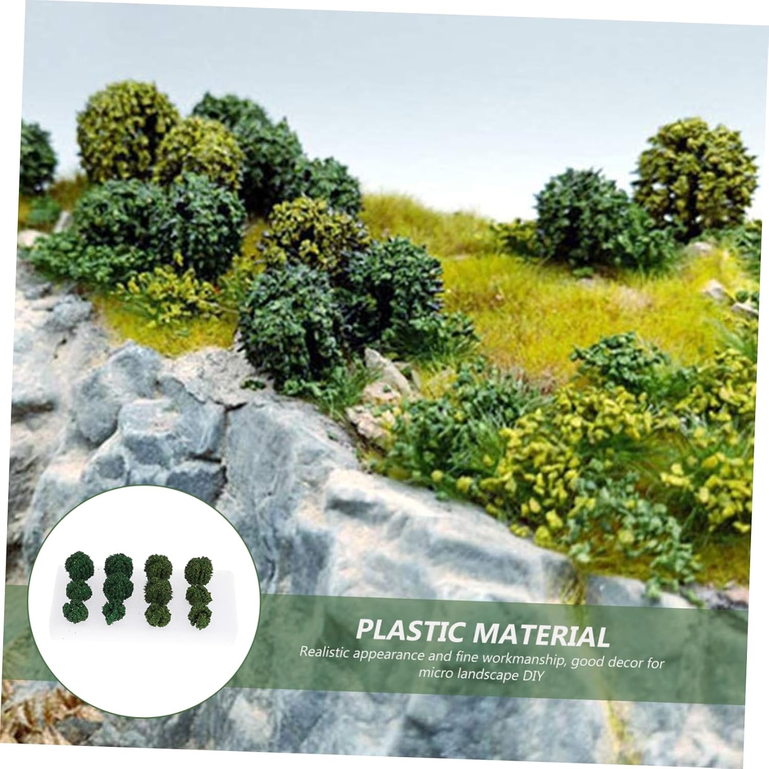 in miniatura: presenta una lavorazione raffinata e dettagli delicati, che ti offriranno un buon effetto visivo, ciuffi di in miniatura Mini giocattolo: l'ornamento dell'albero è vivido, pieno di vitalità, realistico ed è una rara decorazione per la casa, verde artificiale Piante finte piccole: ottime per modelli di tavoli di sabbia o modelli di edifici, anche per micro ornamenti paesaggistici, modelli di mini arbusti Verde artificiale: puoi posizionarlo ovunque tu voglia, le dimensioni del micro paesaggio decorativo servono per risparmiare spazio e spazio, piante artificiali Fogliame in miniatura: ottimo come decorazione da giardino per esterni, decorazione di vasi di fiori, decorazione da giardino in miniatura, ecc., arbusto in miniatura