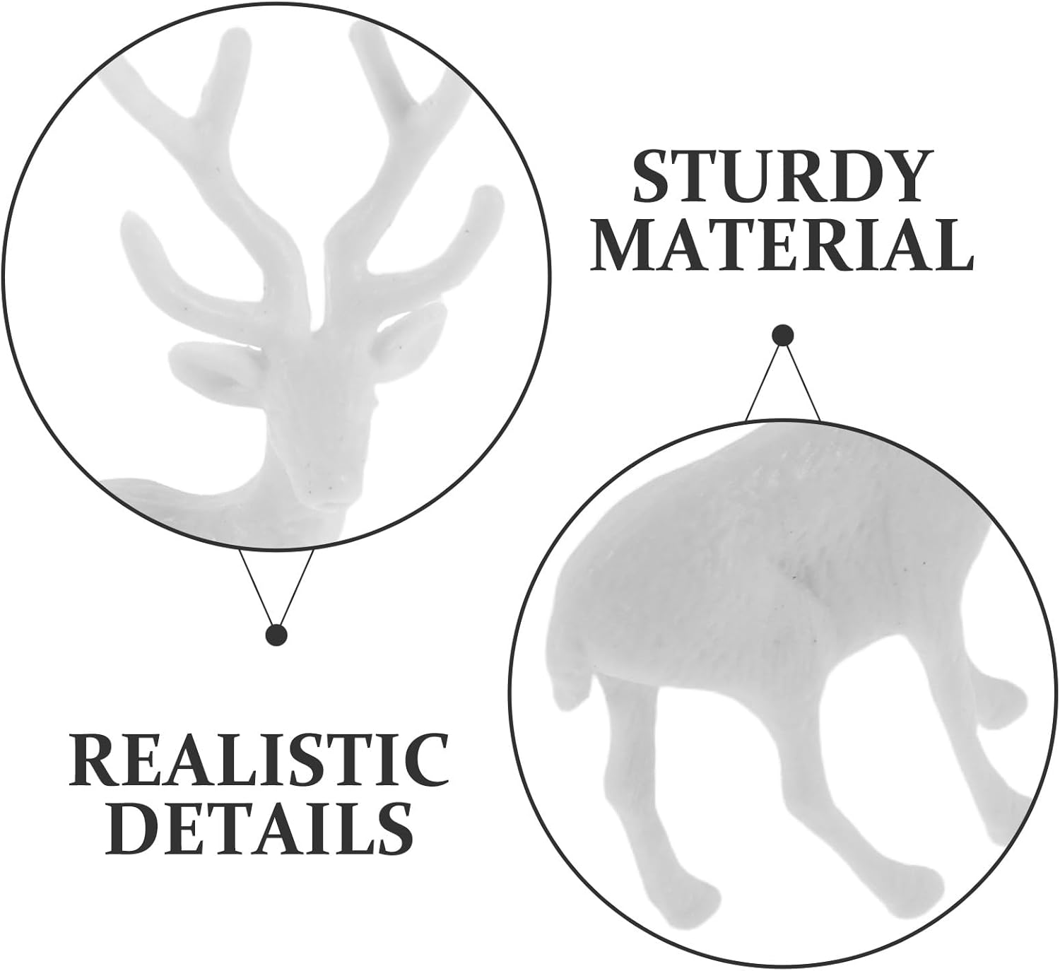 Tocco natalizio realistico: le figurine di renna presentano un design simulato di alce, aggiungendo un elemento decorativo stagionale realistico di cervo alla tua tavola di Natale e alle esposizioni festive. Decorazione versatile: puoi usarli facilmente per decorare micro paesaggi, creare scene natalizie con cervi nella sabbiera o usarli come renne da tavolo per aumentare l'atmosfera festosa in ogni stanza. Piccole e belle: queste statue di alci in stile micro paesaggio mantengono i loro colori vivaci e le loro forme sono quindi perfette come figurine decorative di cervo in plastica o ornamenti di cervo per anni. Compatte e creative: le minuscole statuine di renne sono ideali come decorazioni di cervi per le case delle bambole, per realizzare mini renne o come statuine di renne per la scrivania, massimizzando le possibilità di decorazione senza sovraffollare lo spazio. Arricchimento multiscena: questo set di figurine di alci e statue di renne per la tavola si adatta perfettamente a vari temi e ambienti decorativi ed è adatto per uffici, soggiorni o interni di negozi