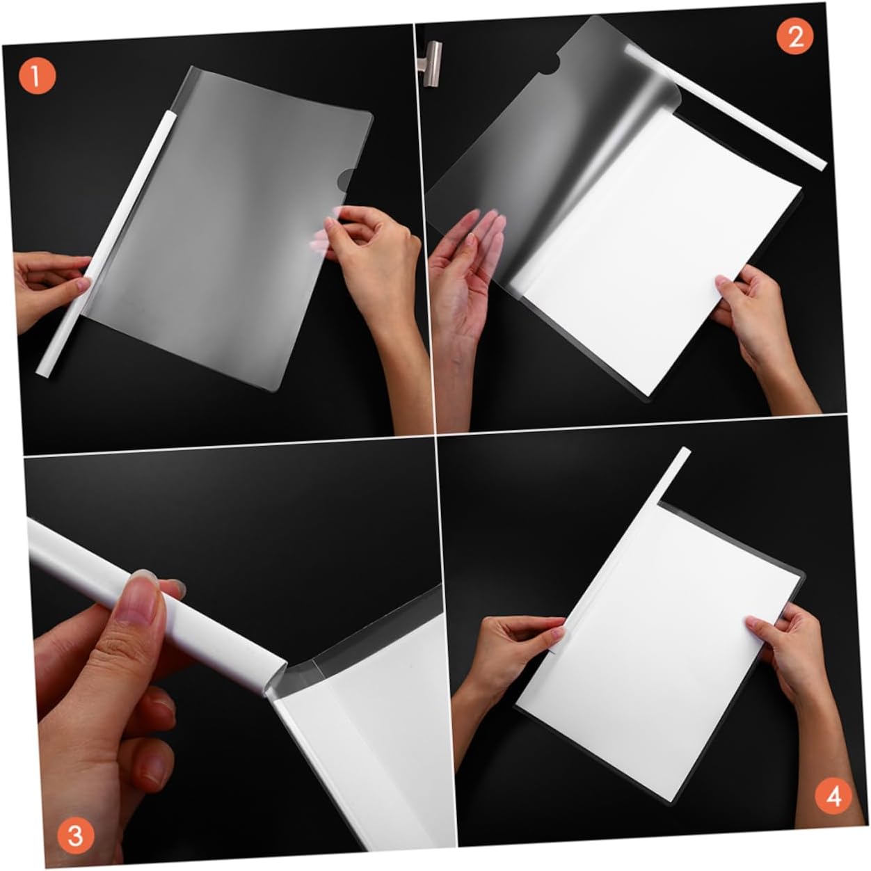 Cartelle per report: queste cartelle contengono file di formato a4, inclusi documenti, documentazione, test, libri di musica, una disposizione ragionevole ed efficace insieme, custodia in plastica con superficie anti-schizzi, per conservare i documenti, copertine per report Cartella portadocumenti: portadocumenti ad alta capacità, copridocumenti con spessore 10 mm, Rapporto di copertina: la barra di bloccaggio antiscivolo tiene tutto insieme e non scivola dalla copertina, prodotto per ufficio Forniture per ufficio trasparenti: morsetto scorrevole trasparente, fogli trasparenti abbinati, leggeri e flessibili, adatti a tutti i tipi di documenti, coprono report trasparenti. Cartella bianca: adatta per essere utilizzata per scuole, privati, ecc., cartelle bianche