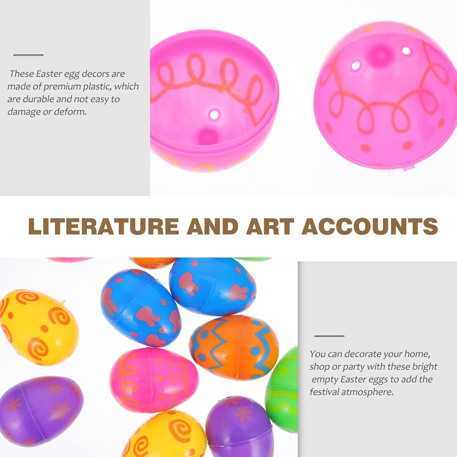 Uova di Pasqua riempibili: puoi decorare la tua casa, il tuo negozio o la tua festa con queste luminose uova di Pasqua vuote per migliorare l'atmosfera del festival. Uova di Pasqua riempibili Uovo di Pasqua decorativo luminoso: si abbina molto bene con altre decorazioni per feste di Pasqua, decorazioni e uova di Pasqua in plastica Uova di Pasqua vuote e luminose: perfette per decorare la festa di Pasqua per creare un'atmosfera festosa e rendere la tua casa più bella Uovo di Pasqua in plastica vuoto Uova di Pasqua in plastica: con pregevole fattura, sembra bello e adorabile, festoso e decorativo per la tua scrivania, uova di Pasqua in plastica da festival Uova di Pasqua luminose: questi ornamenti per uova di Pasqua hanno un design realistico, un effetto decorativo, uova di Pasqua vuote luminose