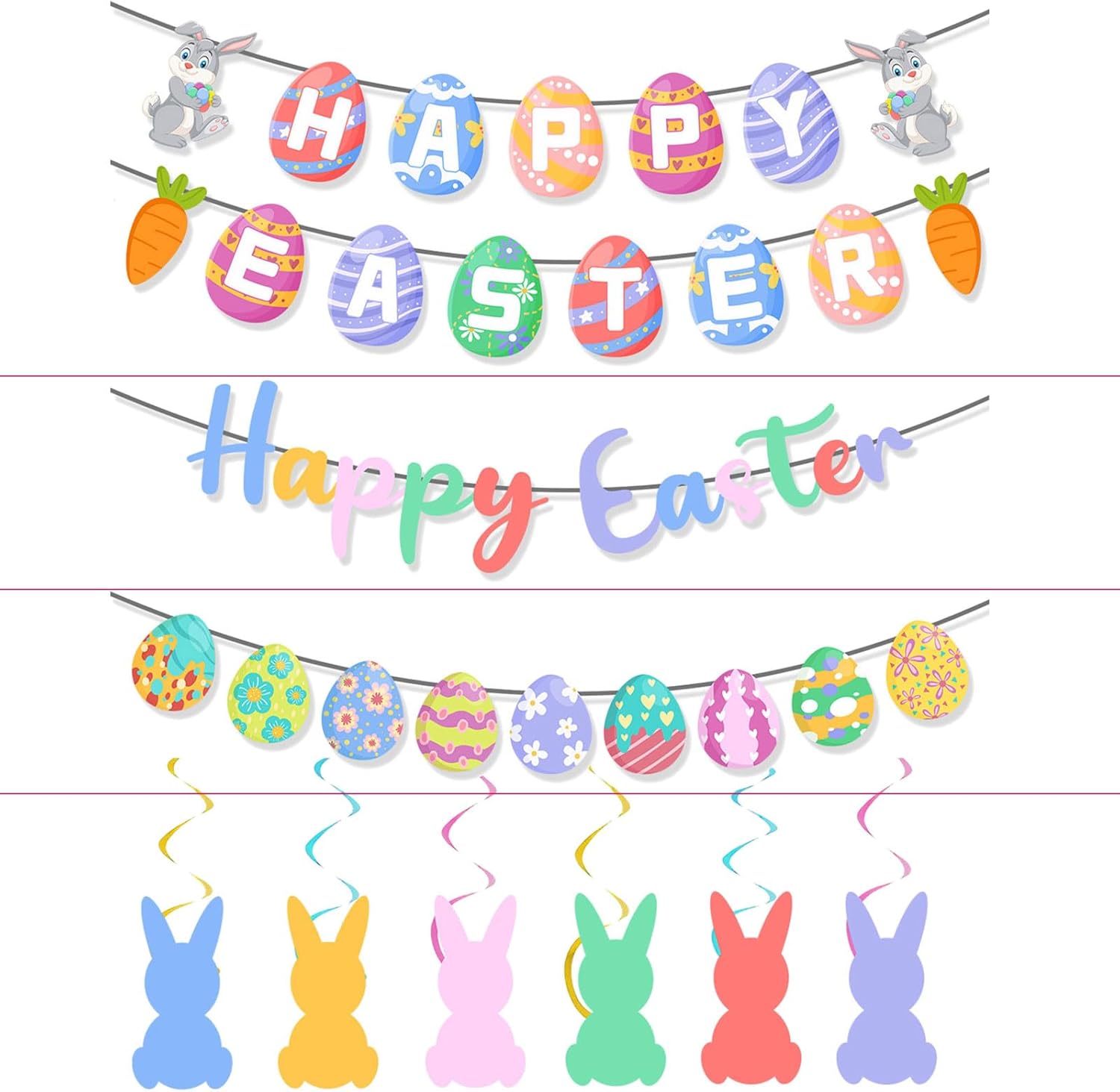 Uova di Pasqua, lettere, ghirlande da appendere per la casa, la scuola e la decorazione di eventi, accessori per vetrine di negozi, pianificatore di eventi