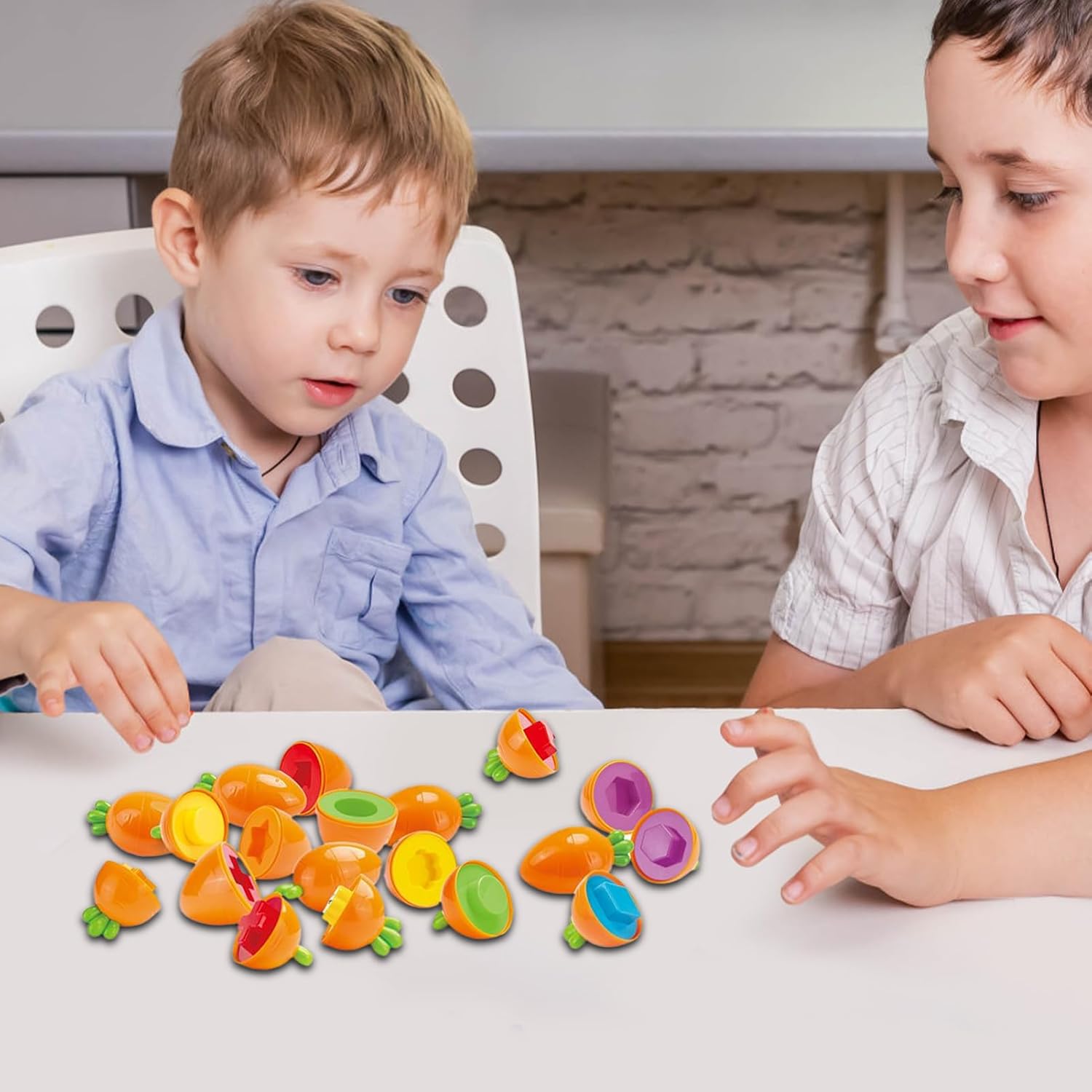 【Sviluppo delle capacità motorie fini】 Queste uova abbinate migliorano la destrezza e la coordinazione occhio-mano, migliorano le capacità cognitive mentre preparano i bambini piccoli alla scrittura precoce attraverso esercizi di presa. Compagno di apprendimento precoce: questo gioco di abbinamento sviluppa capacità di riconoscimento in modo creativo insegnando forme e colori e promuovendo l'educazione della prima infanzia in un formato coinvolgente e divertente. 【Sicuro e durevole】 La struttura robusta ma morbida garantisce un'interazione fluida con la pelle delicata, ideale per l'allenamento di gioco quotidiano. 【Giocattolo educativo coinvolgente】 Con un design flessibile adatto sia a scopi educativi che di intrattenimento, promuove il divertimento di gruppo interattivo mantenendo una struttura sicura per i bambini e le sue dimensioni maggiori eliminano efficacemente i rischi di soffocamento. 【Giocattolo per il pensiero logico】 Incoraggia il pensiero critico attraverso la diversa forma della carota, interagisci con l'innovativo giocattolo di esplorazione a forma di uovo, promuovi un'esperienza di gioco divertente e stimola la curiosità