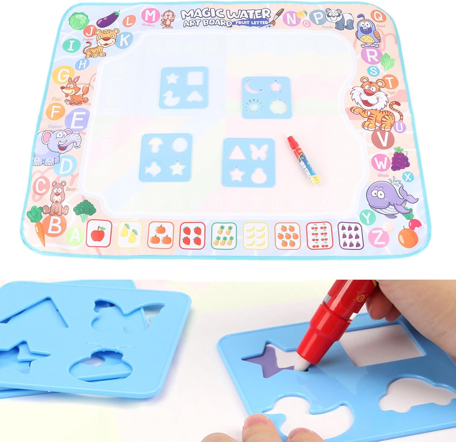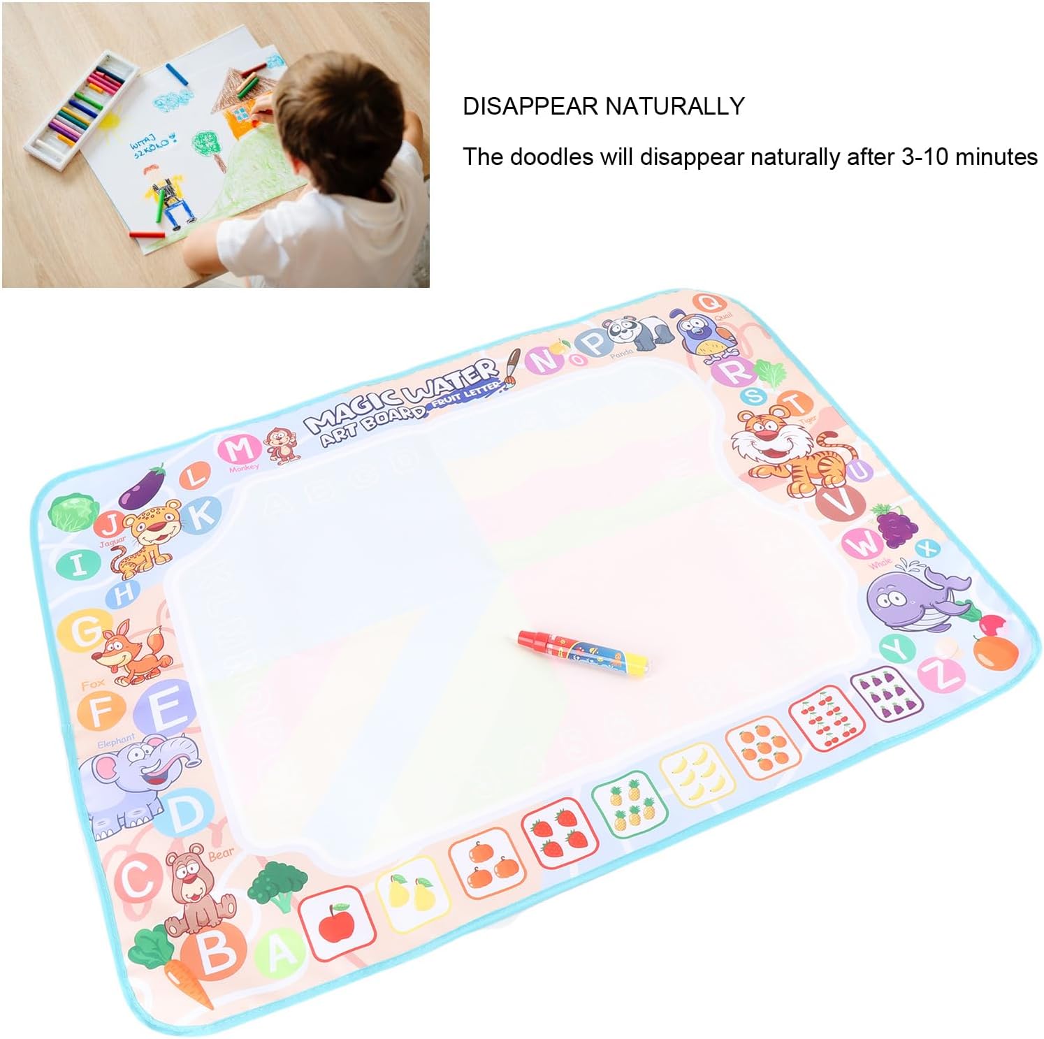 [Innovative Water Painting] Lasciare fluire la creatività di tuo figlio con questo unico tappetino per scarabocchi d'acqua che richiede acqua limpida per creare disegni vibranti. Non sono necessari vernici o inchiostri disordinati, rendendolo un modo senza problemi ai bambini di esplorare il loro lato artistico mantenendo tutto pulito. per favorire l'immaginazione e le capacità motorie in modo divertente e coinvolgente. [Eco-friendly e riutilizzabile] Progettato per la sostenibilità, questo tappetino per il disegno dell'acqua può essere facilmente pulito con acqua, consentendo infinite ore di riutilizzo. Una scelta intelligente per i genitori che cercano giocattoli ecologici che riducono gli sprechi senza compromettere il valore del gioco. Si asciuga rapidamente per un riutilizzo istantaneo, garantendo divertimento non-stop. [Child-Safe & Odorless] Realizzato con fibre di poliestere di alta qualità e plastica, questo tappetino da scarabocchi è completamente non tossico e inodore, offrendo un'esperienza di gioco senza preoccupazione. I materiali soddisfano severi standard di sicurezza, rendendolo ideale per i bambini piccoli e i bambini che amano esplorare con le loro mani e bocche. [Area di disegno spaziosa] Con una dimensione generosa di 80x60 cm, questo tappetino offre ampio spazio per più bambini da disegnare insieme, incoraggiando il gioco collaborativo. La grande superficie consente ai bambini di esprimere pienamente la loro creatività senza vincoli, rendendola perfetta per le impostazioni di casa, aula o gruppo di gioco. [Portatile e adatto ai viaggi] leggero e facile da arrotolare, questo tappetino per scarabocchi d'acqua è un must per l'intrattenimento in movimento. Che si tratti di un viaggio, di un volo o di un picnic, mantiene i bambini impegnati senza la necessità di schermi. Include il trasporto di penne maggiore comodità, rendendolo un giocattolo versatile per qualsiasi avventura.