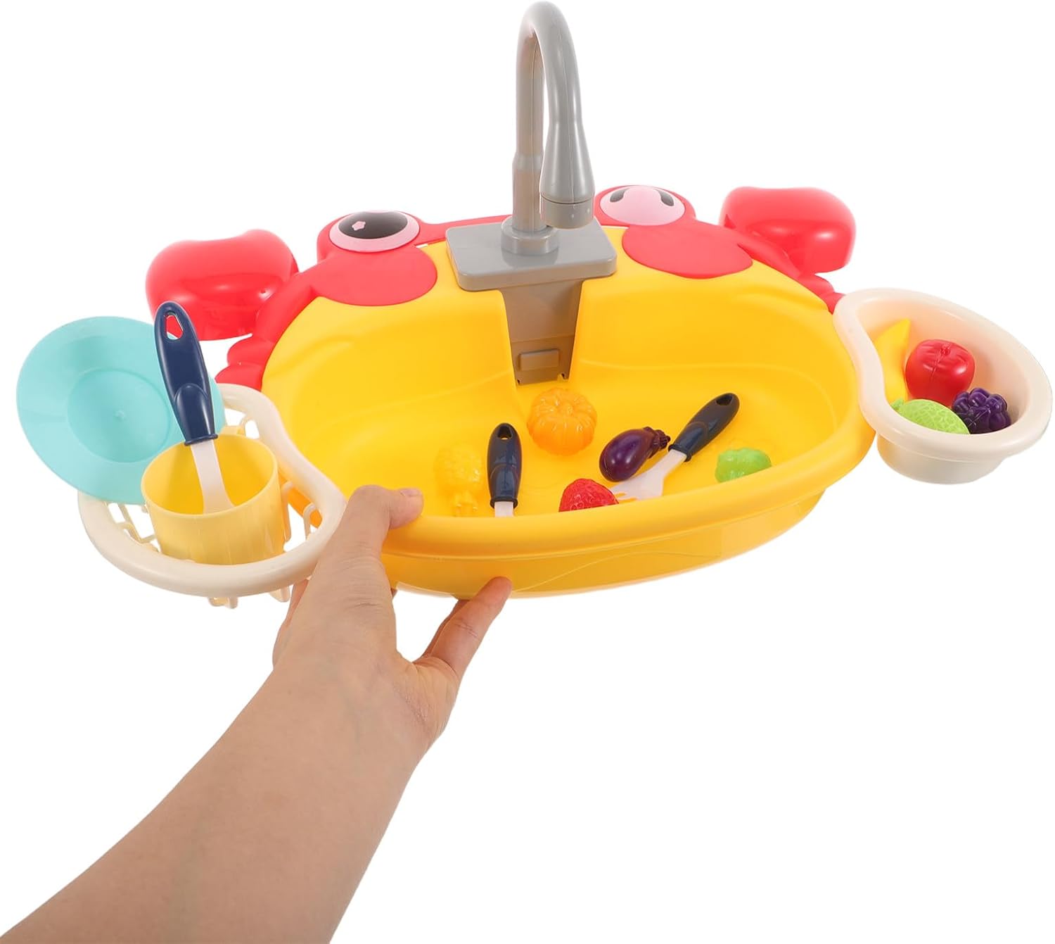 Simulazione di cucina realistica: questo set di giocattoli da cucina per bambini include un finto lavello da cucina giocattolo, che fornisce scenari realistici in cui i bambini possono esercitarsi a lavare i piatti con accessori per lavello da cucina giocattolo e ciotola per lavare la frutta Funzione di riciclo automatico dell'acqua: con giocattolo di riciclo automatico dell'acqua e opzioni di giocattolo di lavastoviglie elettrica, i bambini si divertono con vera acqua corrente senza la seccatura dell'impianto idraulico, ideale per giochi d'acqua al chiuso per bambini Accessori completi: il set di giocattoli da cucina include una ciotola per lavare frutta e verdura, un lavello giocattolo con accessori e giocattoli da cucina per i bambini per promuovere un gioco di finzione educativo per l'apprendimento precoce Facile da pulire e resistente: dotato di lavandino giocattolo con acqua corrente, il materiale leggero è semplice da mantenere, garantendo bellezza e igiene per un uso prolungato come giocattolo da cucina da gioco Gioco sensoriale coinvolgente: con realistiche ed effetti sonori, il giocattolo interattivo del lavello della cucina stimola la crescita cognitiva e l'esplorazione sensoriale, rendendolo perfetto per simulare routine di lavaggio a casa
