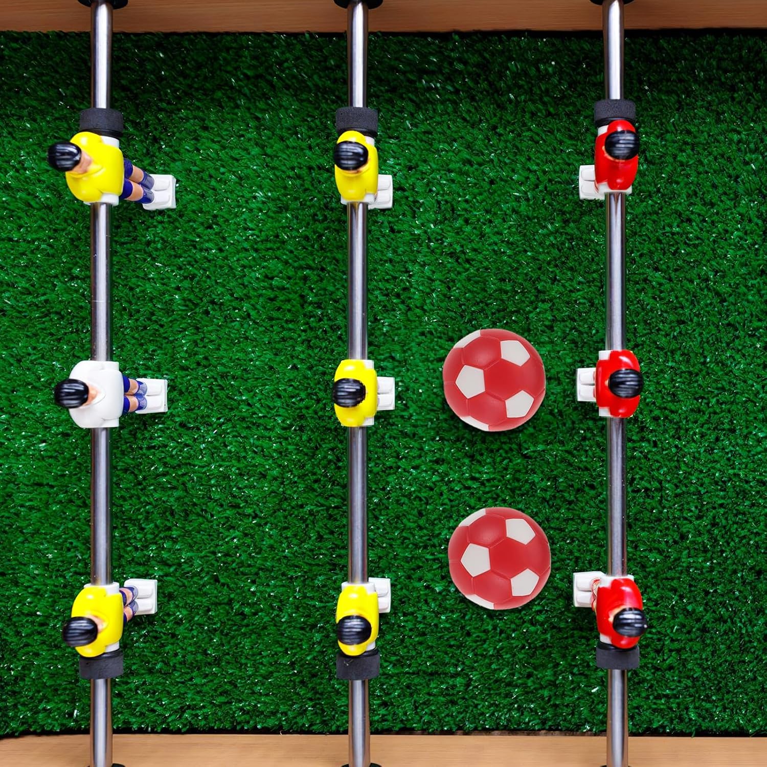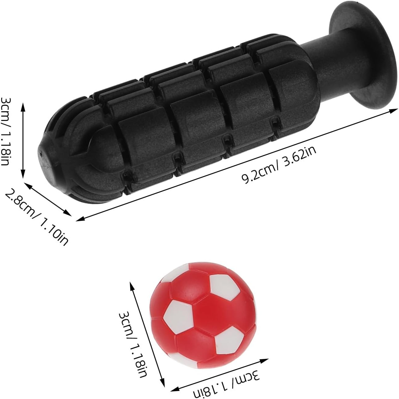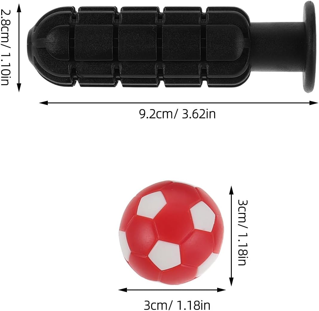 Migliore controllo del gioco: Le robuste impugnature del biliardino con design seghettato consentono ai giocatori di avere una presa migliore quando si gioca a biliardino e migliorano l'esecuzione delle abilità Set completo di accessori: Le maniglie del biliardino e i cappucci terminali abbinati forniscono una soluzione ottimale per la sostituzione delle maniglie e la manutenzione dei tavoli da biliardino Presa sicura e salda: Le maniglie di ricambio e i cappucci per le maniglie del biliardino mantengono le maniglie saldamente in posizione, riducendo lo scivolamento durante i giochi veloci Soluzione di facile sostituzione: Il set di maniglie di ricambio in plastica consente un cambio di presa pratico e senza sforzo sul calcio balilla e quindi mantiene gli accessori sempre in primo piano forma Miglioramento visivo: i mini palloni rossi e bianchi colorano il tuo tavolo da gioco e rendono ogni partita di calcio balilla più dinamica e divertente