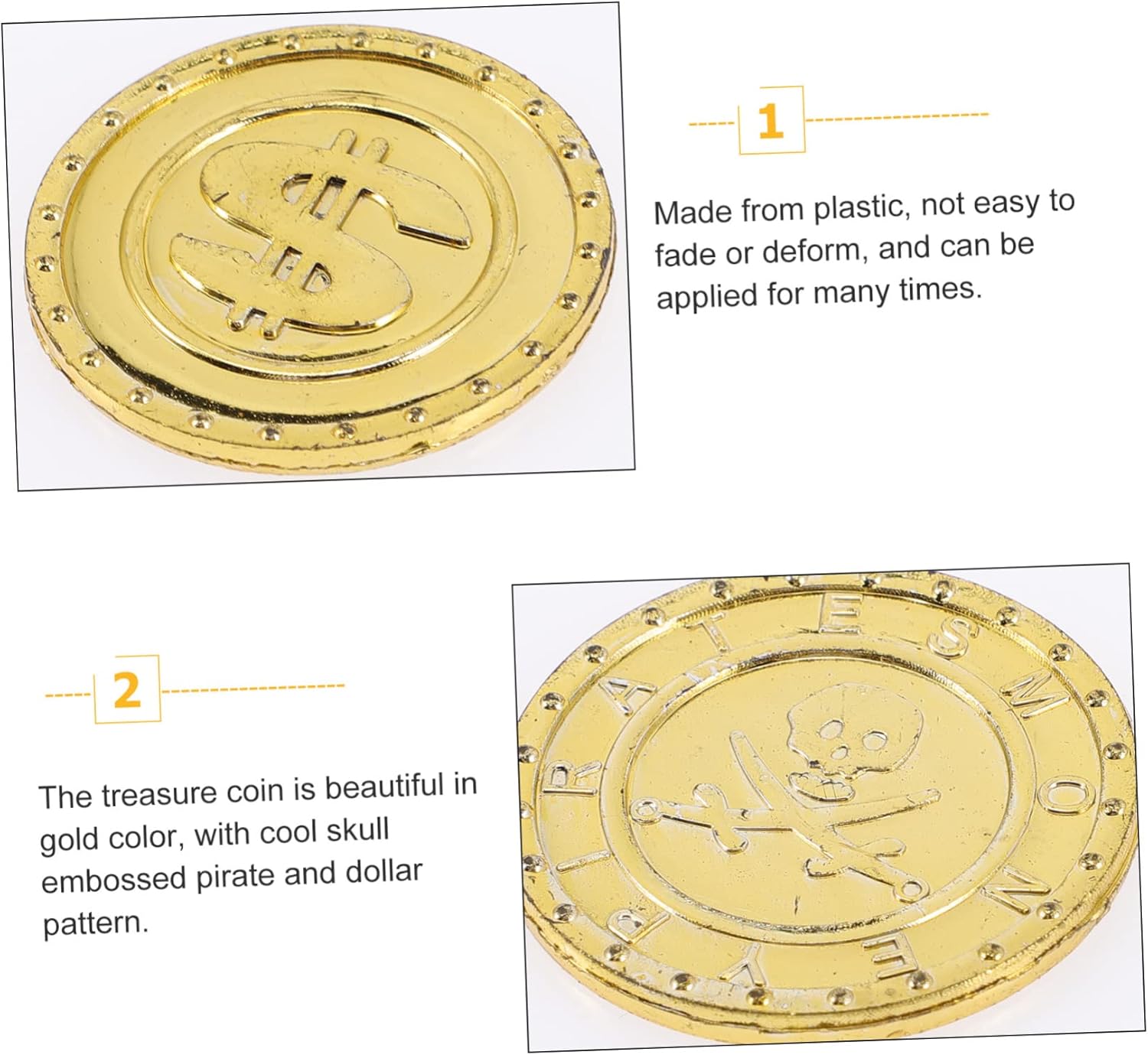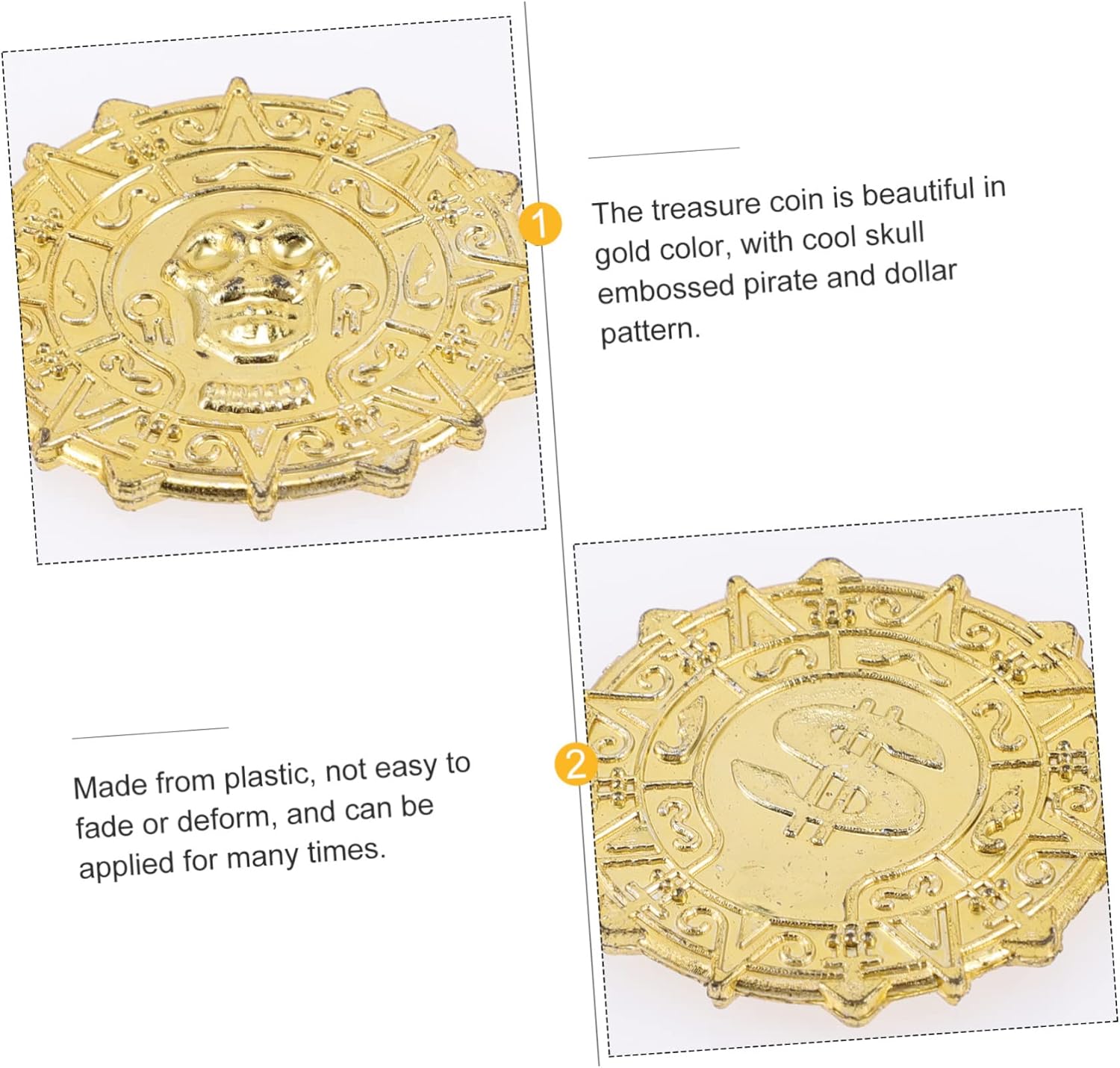 La quantità sufficiente può soddisfare tue esigenze per giochi o per la sostituzione, plastica Monete dei pirati: possono essere utilizzate anche per decorazioni trappole o come premi per i , moneta Monete per l'intrattenimento: adatte per oggetti , decorazioni per centri, decorazioni per feste, scatole , portagioie, ecc., monete dei pirati Pirata - , per divertirsi con un'attività o un compleanno, seppellendo monete, monete dei pirati Monete plastica: può aiutarti a completare molti progetti decorazione, decorare tue feste, monete dei pirati