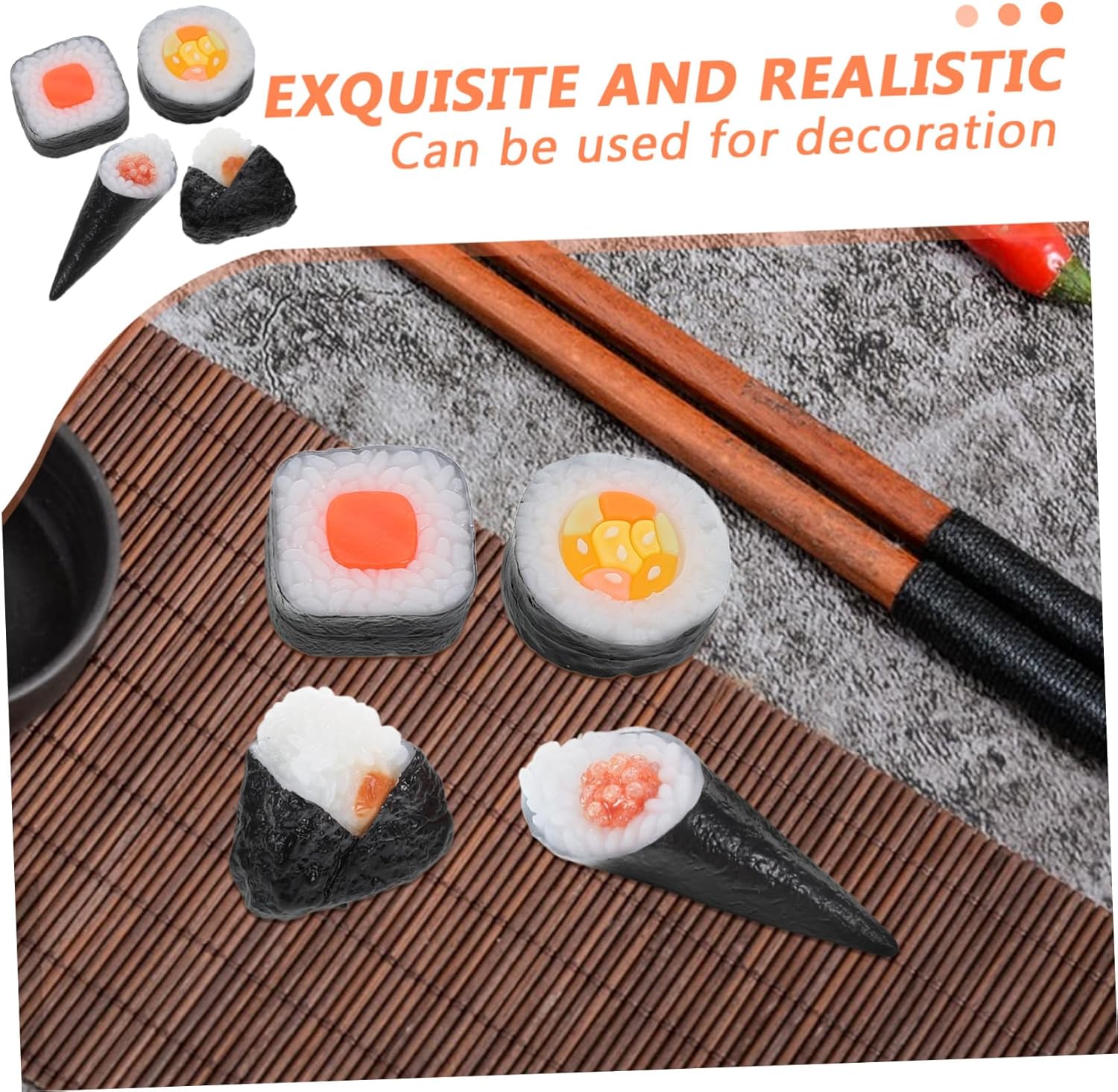 Materiali: realizzati in materiali in pvc, questi modelli sono facili da pulire, mantenendo loro aspetto nel , decorazioni cibo , giocattolo alimentare Design realistico: realizzati per imitare sushi, questi modelli aggiungono un tocco autentico all'arredamento del tuo ristorante giapponese, realistico onigiri, computer finti da esporre Didattico: per l' in dimostrazioni, per aiutare i clienti ad acquisire una migliore comprensione della preparazione del sushi, giocattoli per sushi, per decorare sushi Strumento educativo: per esposizione e insegnamento, i clienti a comprendere più processo preparazione del sushi, cibo realistico, oggetto per cibo Realizzati in materiali in pvc, questi modelli sono facili da mantenere, garantendo rimangano in condizioni ottimali, giochi finzione, accessori per da gioco
