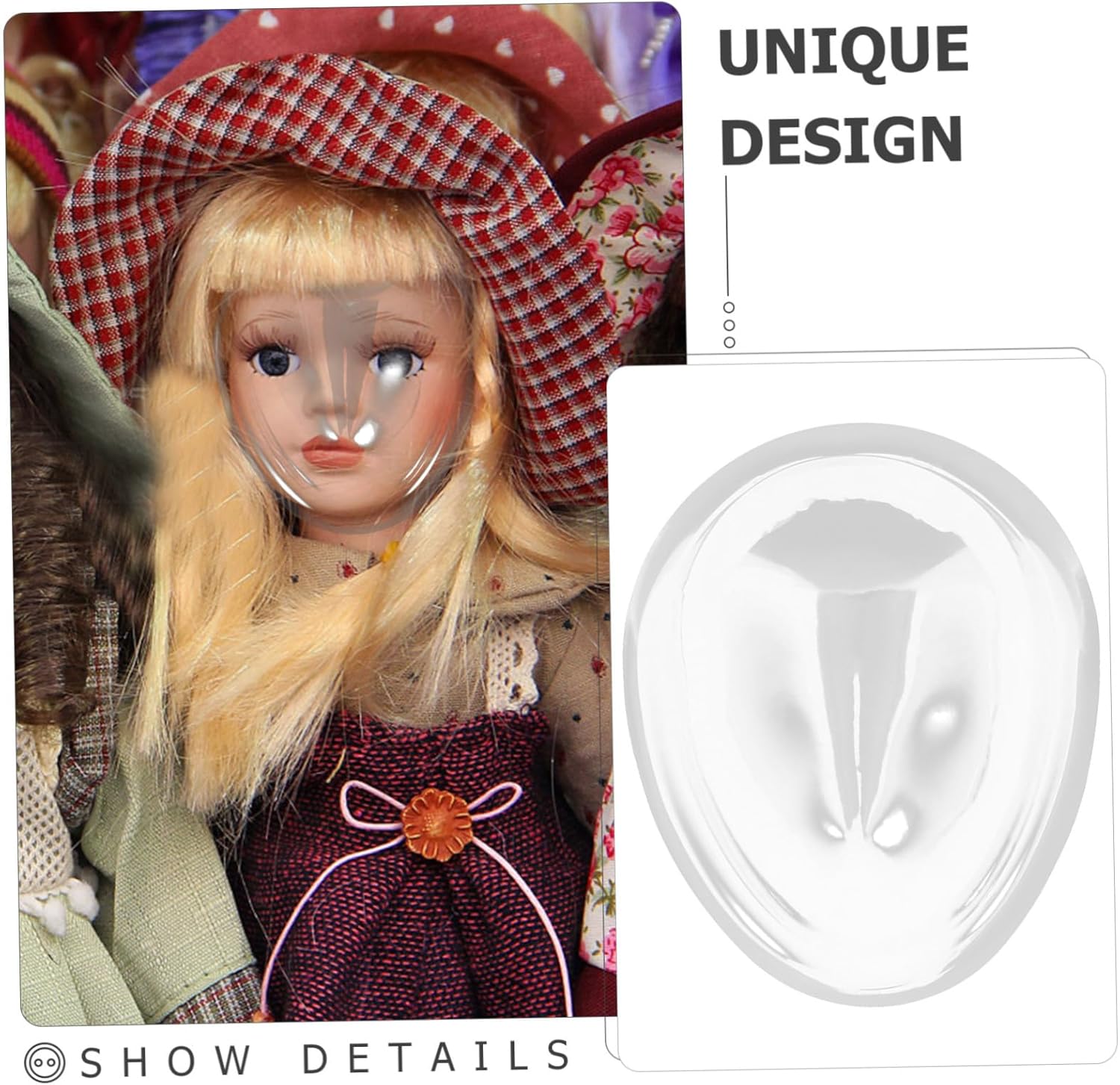 Accessori per il viso dei giocattoli: usa un accessorio per proteggere il viso della tua bambola da eventuali danni e puoi esporre la tua bambola e impedire ad altri di toccarla, maschera fai da te per bambole In plastica per bambola: la maschera trasparente può fornire una buona protezione tuo giocattolo e il design spesso può essere una buona scelta per te, in plastica Mini copertura per bambola: puoi creare un look speciale per adornare la tua bambola e questa maschera può essere utilizzata in negozio per esporre la bambola ed evitare che le persone la tocchino, maschera di plastica Mascherine creative: realizzate in materiali plastici durevoli e utili, puoi vedere chiaramente grazie design trasparente, che lo mantiene anche in buone condizioni, artigianato fai da te per il viso Maschere per bambole in miniatura: per proteggere la tua bambola detriti, puoi vedere chiaramente il viso grazie all'aspetto trasparente, bambole artigianali