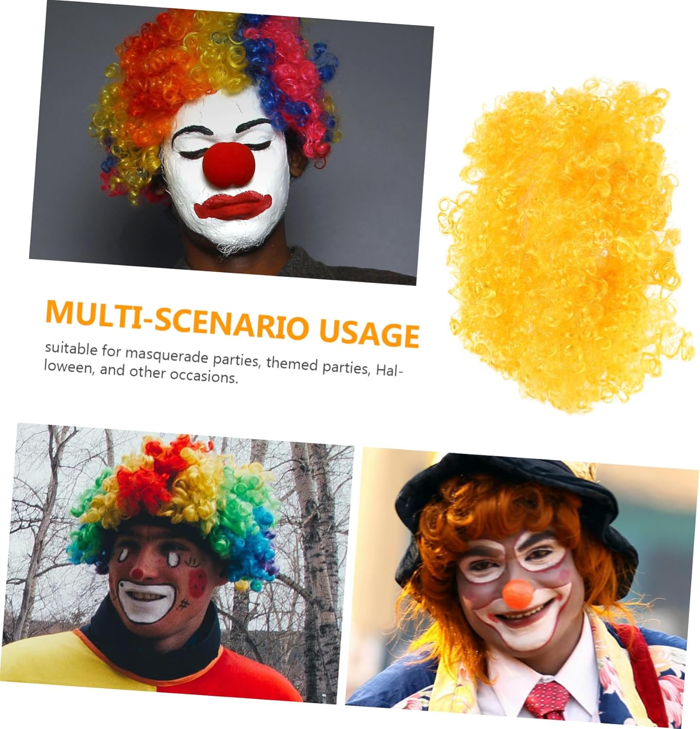 Parrucche da festa per le vacanze: stile unico, questa parrucca da donna è alla moda e piena di personalità, aggiungendo un tocco diverso tuo look, affascinanti parrucche da festa Finti divertenti: questa parrucca è adatta a varie occasioni, può essere utilizzata per creare look più alla moda in diverse occasioni, parrucche da clown per adulti Parrucche da festa alla moda: adatte per halloween, cosplay, costumi, feste a tema, mascherate, balli di fine anno, serate fuori, carnevale, pesce d'aprile e qualsiasi occasione, finti per festival Forniture per cosplay: realizzate in materiale che le rende lucide, leggere e riutilizzabili, sono comode da indossare, parrucche per feste in maschera Decorazioni per feste a tema carnevale: avrai una buona esperienza d'uso grazie alla perfetta lavorazione di questo prodotto, decorazioni per feste di compleanno a tema circo
