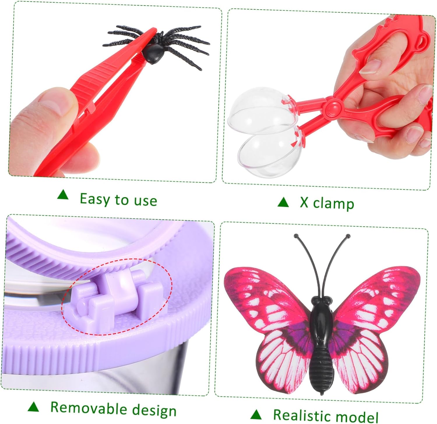 Dettagli chiari: visore ingranditore amplifica dimensioni degli insetti, mostrando dettagli intricati e strutture intricate nascoste sotto i loro esterni, osservatore insetti, kit osservazione degli insetti Esplorazione pratica: set visori ti incoraggia a partecipare all'apprendimento pratico mentre osservi, e chiudi, d'ingrandimento soider catcher, barattolo con d'ingrandimento Esperienza piacevole: kit per la visualizzazione degli insetti funge anche da strumento istruttivo e divertente, perfetto per e campeggi, contenitori per l'osservazione degli insetti, strumenti per campioni insetti Strumenti manipolazione: pinzette e clip facilitano la manipolazione attenta e rispettosa degli insetti durante l'osservazione e la raccolta, barattolo delle pinzette, strumento degli insetti a sgancio rapido Facile da maneggiare: pinzette e clip incluse con cura ti consentono maneggiare gli insetti con la massima cura e rispetto durante l'osservazione, contenitore con d'ingrandimento, raccoglitore insetti per