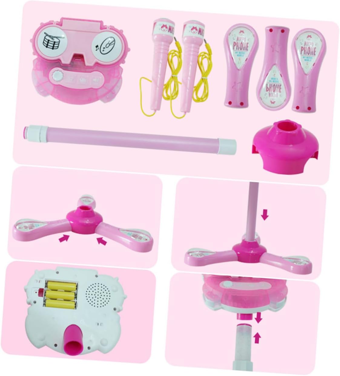 Microfono: con luci, musica, applausi, amplificazione, tamburi e gong, funzioni mp3, microfono Riproduci microfono: adatto per ragazza o ragazzo, microfono Microfono: realizzato in materiali plastici e componenti elettronici, sicuro e riproducibile Microfono giocattolo: puoi collegarlo al telefono cellulare e al microfono mp3 Musica: promuove la creatività, il pensiero, la capacità cognitiva del , l'abilità operativa ecc., microfono