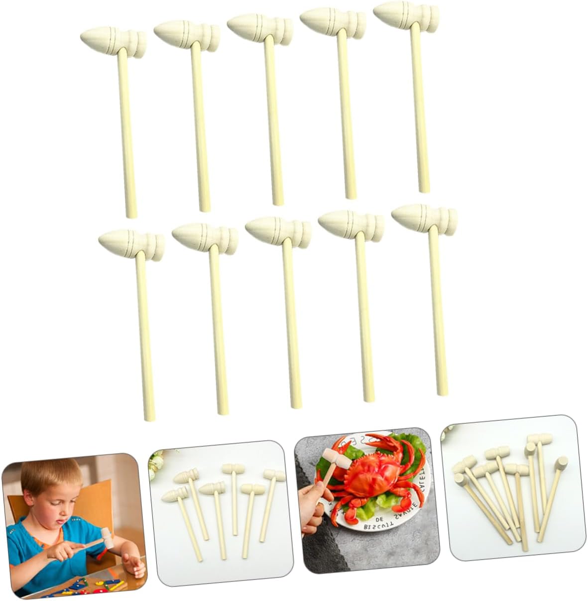 Martelli per aragosta in legno: dimensioni compatte e facili da usare, aprono comodamente il guscio duro dei frutti di mare in modo da poter gustare facilmente il cibo delizioso. Giocattoli per bambini Giocattoli a martello: funzioni multiuso, questi martelli in legno possono essere utilizzati come strumenti fai-da-te per bambini, mini martello per granchio. Martello per granchi: con questi martelli in legno per granchi e aragoste puoi facilmente rompere e aprire granchi, aragoste e crostacei senza danneggiare la tenera carne all'interno. Inoltre, il nostro martello per granchi è facile da pulire e offre molta comodità. Martello per torta in legno: fatto di materiali e puoi essere certo di usare, mazze per aragosta in legno Martello per frutti di mare: questi martelli per granchio sono realizzati in legno naturale con superficie liscia non verniciata, solidi e affidabili, puoi usarli facilmente e ti serviranno a lungo, martello di legno