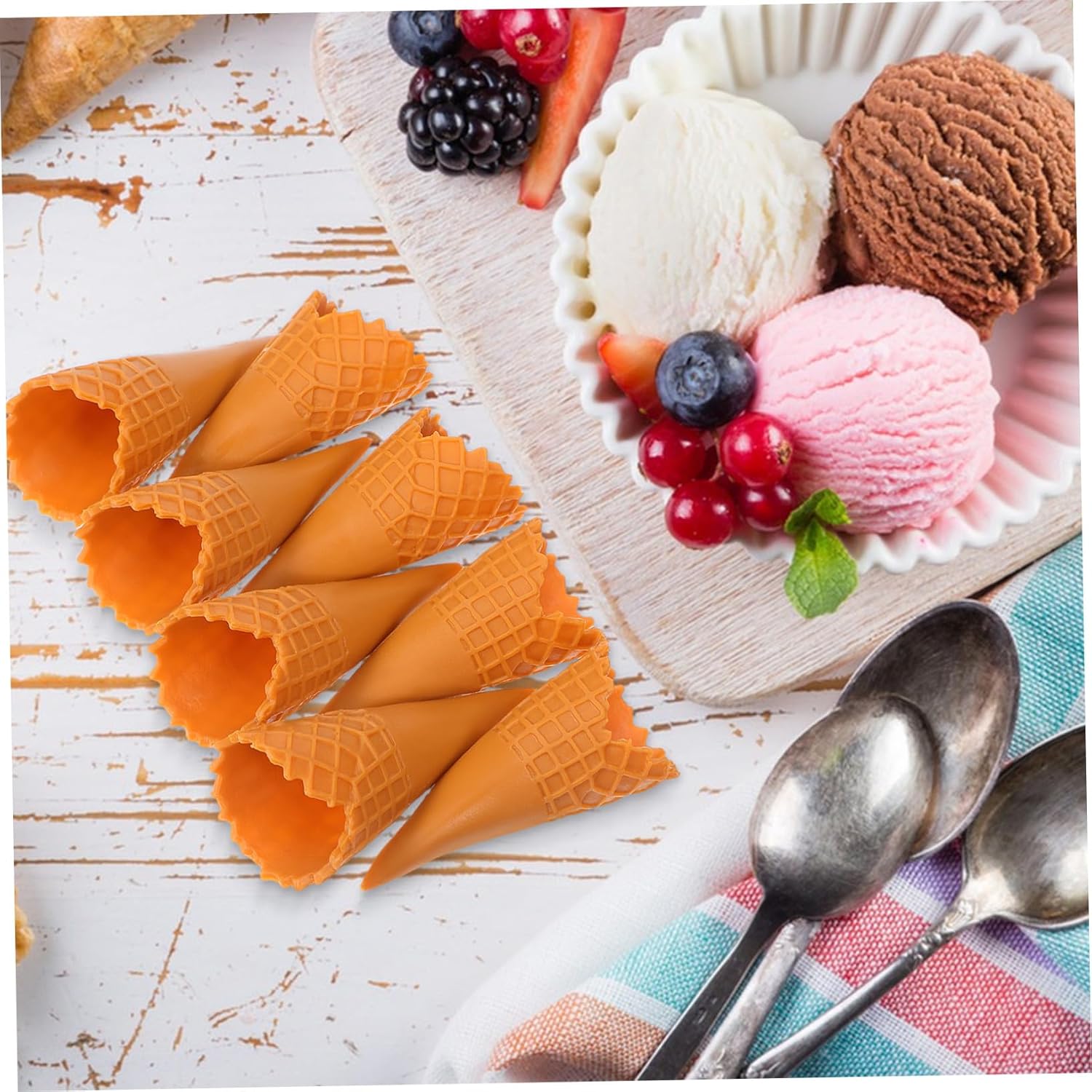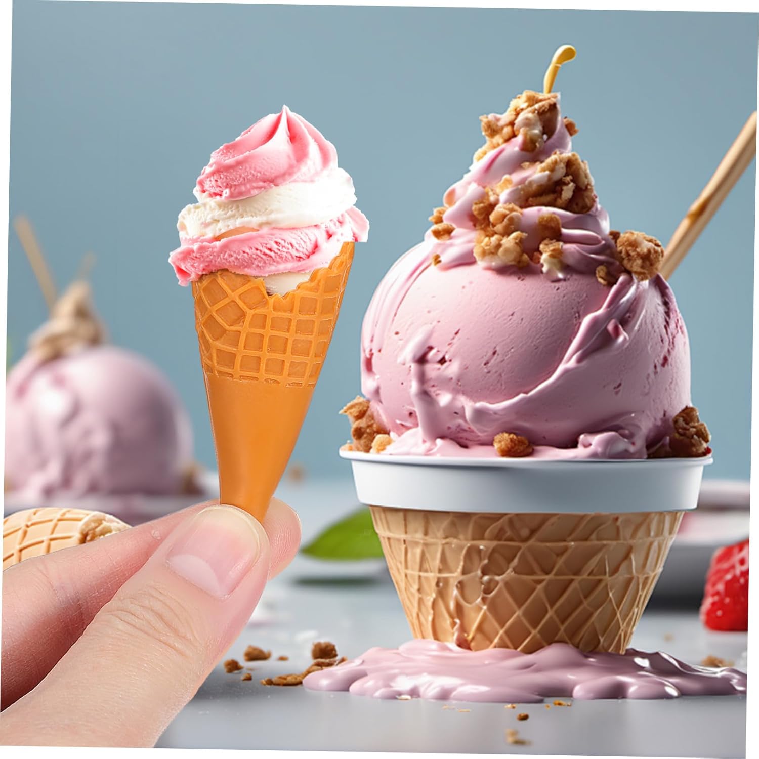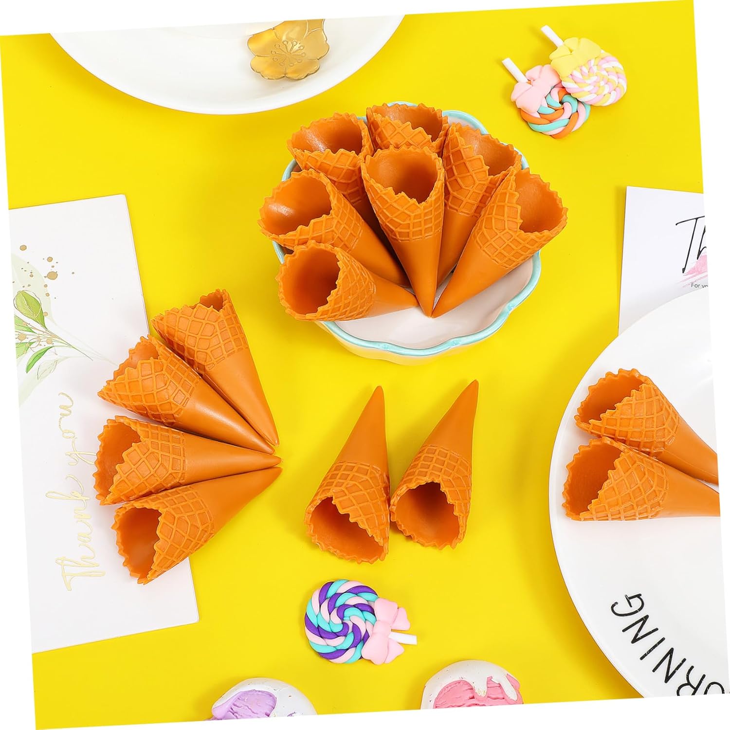 Cono finto: mini cono gelato vuoto realistico e dai colori vivaci, adatto alla maggior parte degli stili di case delle bambole, accessorio per gelato Piccoli coni gelato: puoi lavorare con gli amici su progetti fai da te per sviluppare la loro creatività e immaginazione e trascorrere del tempo di qualità con loro, cono gelato artificiale Giocattolo di simulazione del gelato: con bellissimi accessori fai da te, puoi usare la tua immaginazione per creare bellissimi accessori per capelli, gelato simulato Mini coni gelato: il design adorabile li rende più unici e possono avere un buon effetto decorativo, coni gelato in plastica Cono gelato fai da te: questi piccoli ciondoli a forma di cono gelato sono ideali per creare gioielli eleganti, realizzando oggetti artigianali che possono essere regalati ai tuoi cari, di cono gelato vuoto