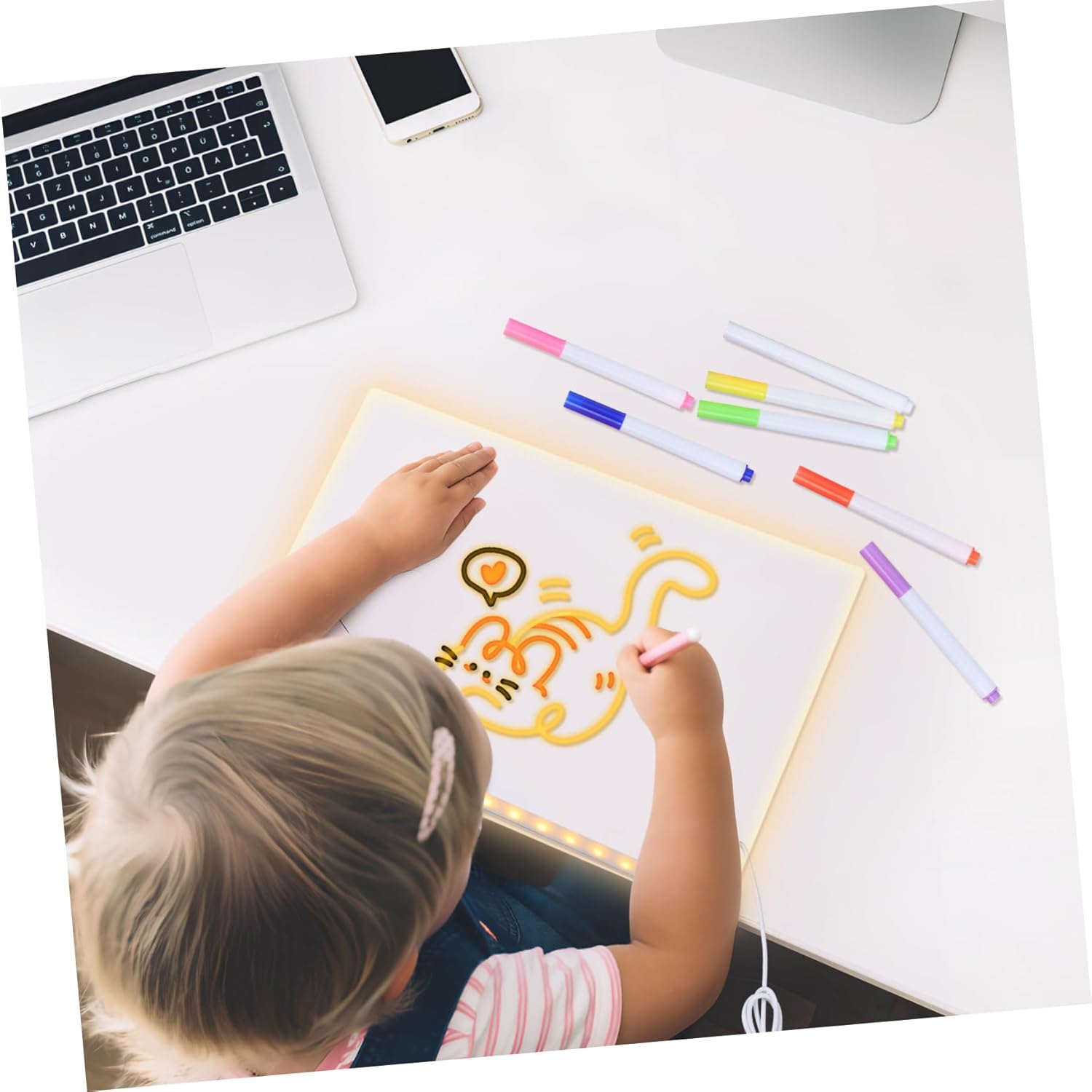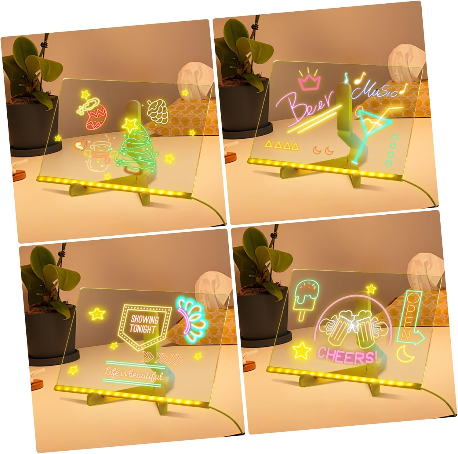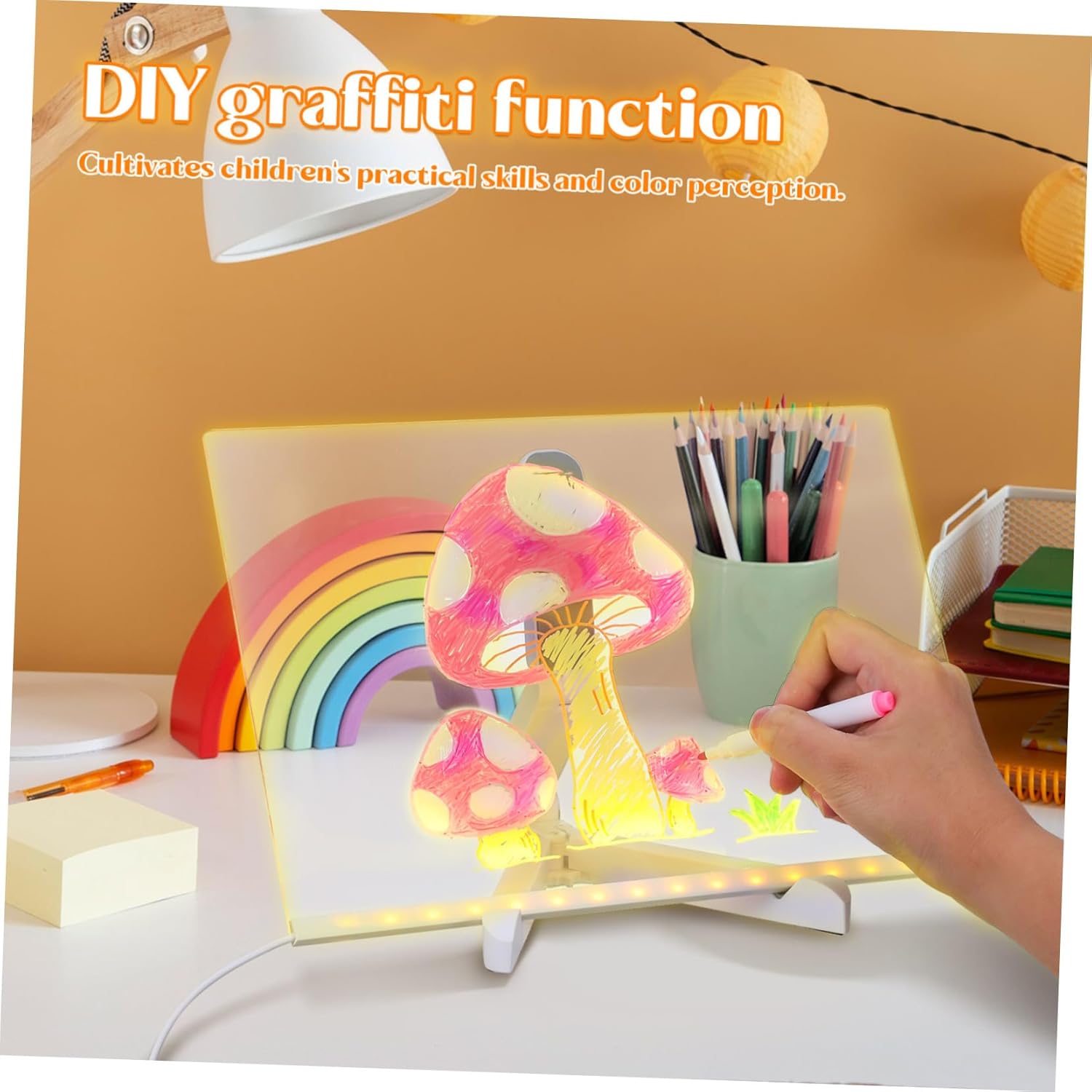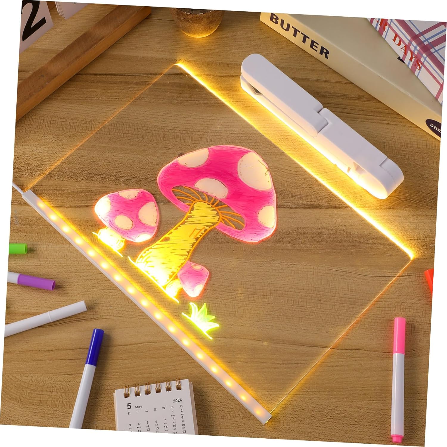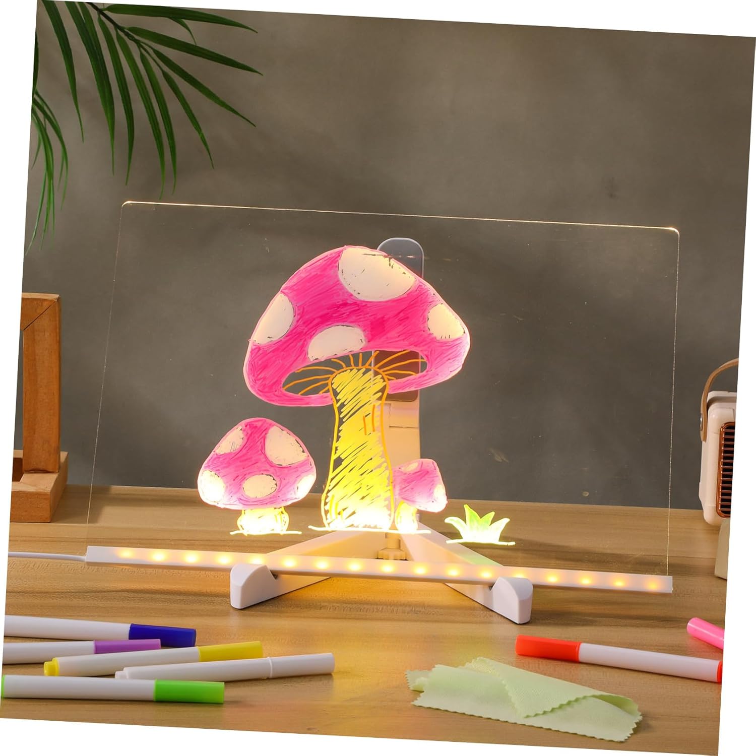 Funzione di illuminazione creativa: la lavagna luminosa consente ai di esprimere la propria creatività anche in condizioni di scarsa illuminazione, per disegnare e scrivere di notte Set di colorati: caratterizzati da colori diversi, questi inclusi migliorano la creatività e aiutano i tuoi messaggi a distinguersi con design accattivanti, Espressione creativa: include vivaci, consentono presentazioni colorate e artistiche dei tuoi messaggi o disegni, Design riutilizzabile: blocco da cancellabile per può essere utilizzato ripetutamente, riducendo spreco di , perfetto per l'uso quotidiano, Notturno: la lavagna luminosa cancellabile a secco per scrivania consente ai di disegnare e scrivere anche in condizioni di scarsa illuminazione, incoraggiando la creatività e l'immaginazione durante la notte